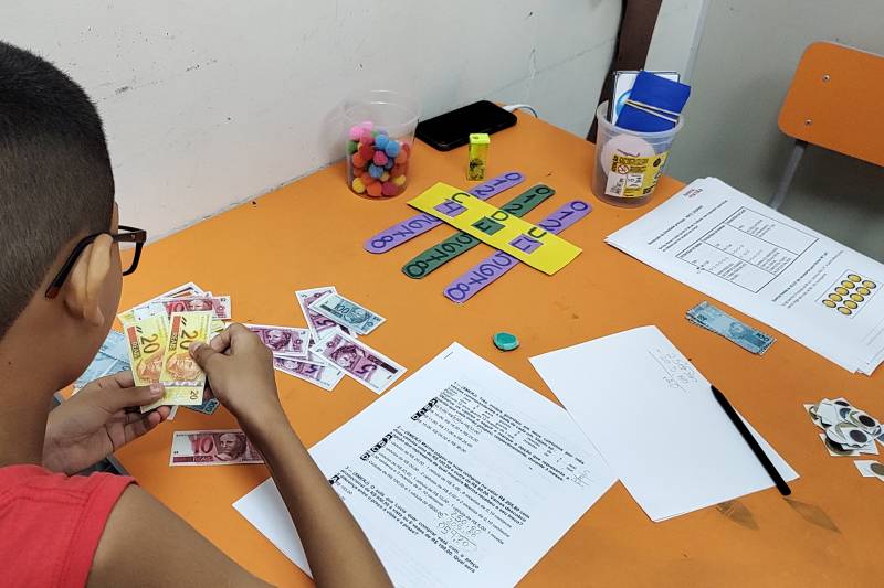 Um dos reabilitandos que vem conquistando autonomia e utilizando a matemática de forma funcional no cotidiano é Samuel da Silva, de 8 anos. Segundo a mãe, Leyde da Silva, o garoto consegue em casa desenvolver a didática.