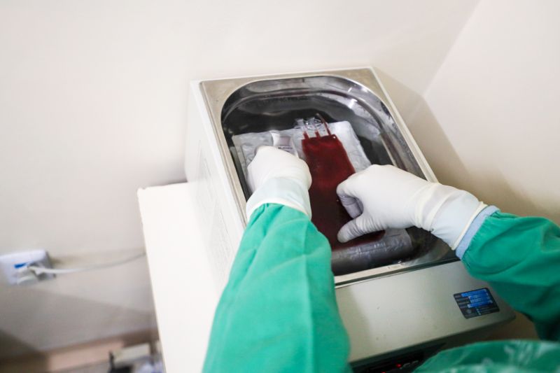 “A aférese é a coleta de um produto do sangue total. Por meio do processamento em uma máquina estéril, coletamos o componente desejado, seja plasma, plaquetas ou, como neste caso, células progenitoras”, afirmou Evelyn Ferreira, gerente da coleta de doadores do Hemopa.
