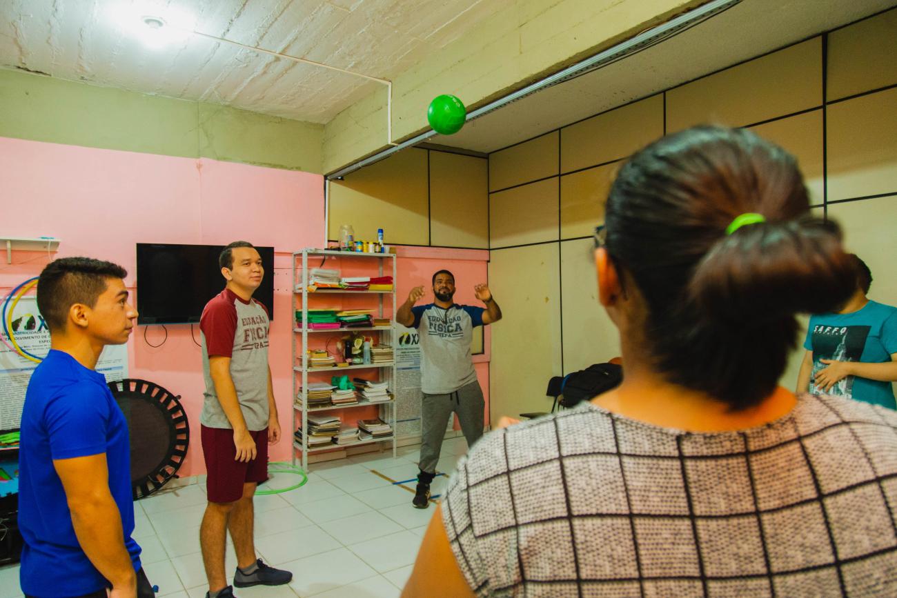 Experiência docente - Segundo a coordenadora do Lafad, o projeto também se originou da necessidade de oferecer um espaço para os alunos do curso de Educação Física vivenciarem a docência na área. Atualmente, participam da iniciativa 12 monitores estagiários e três professores voluntários. Um deles é Daniel Castilho. Formado em Educação Física pela Uepa e especialista em Fisiologia do Exercício e Educação Especial Inclusiva, ele começou a participar do laboratório como monitor, enquanto cursava a graduação, e hoje é um dos professores que auxiliam os alunos nas atividades, sendo também responsável por acompanhar os monitores do projeto durante o estágio supervisionado.