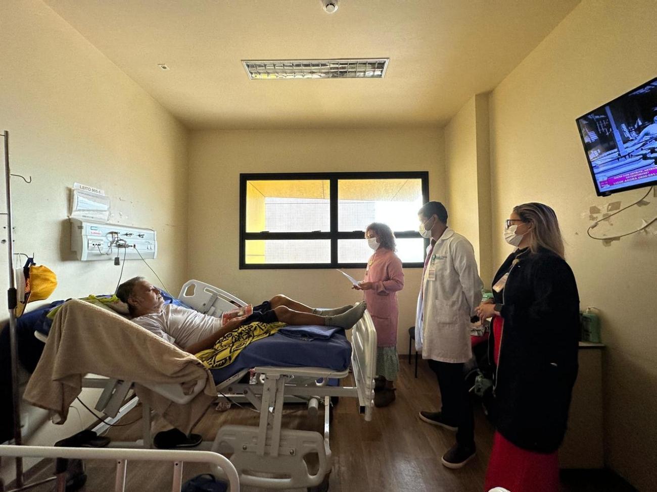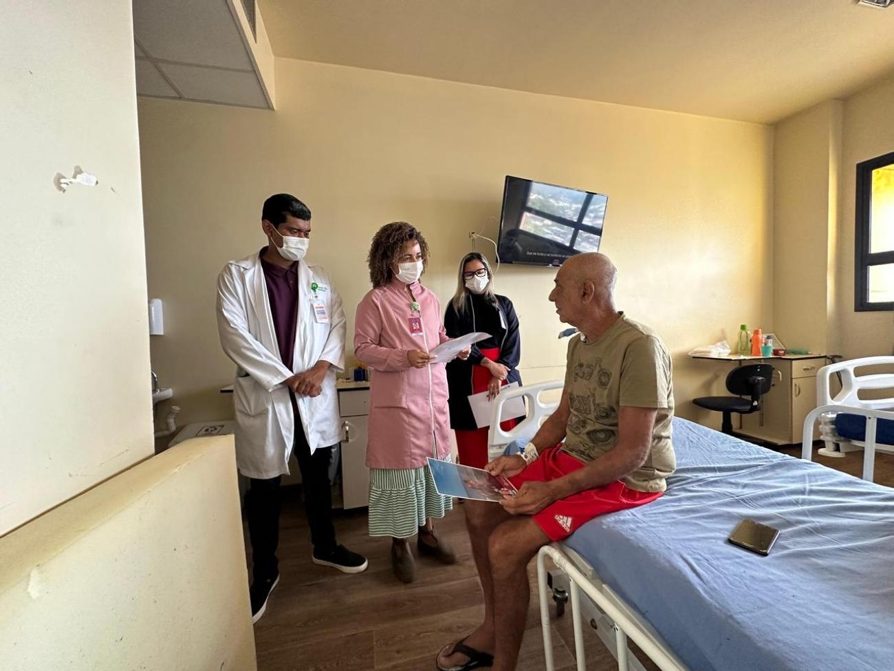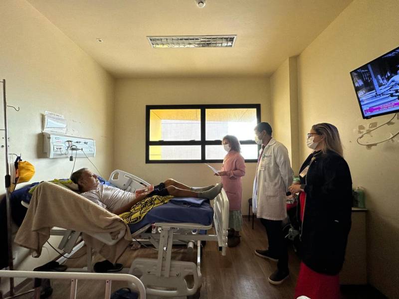Profissionais do hospital leram as mensagens aos pacientesAfeto e cuidado - Raimunda Gomes Ferreira, 66 anos, moradora do município de Ananindeua, na Região Metropolitana de Belém, precisou passar por um procedimento cirúrgico na perna esquerda. Internada desde o dia 24 junho, ela aguarda ansiosa pelo retorno ao ambiente familiar. Enquanto não recebe alta, a paciente tem a companhia do neto, Lucas Ferreira, 25 anos.