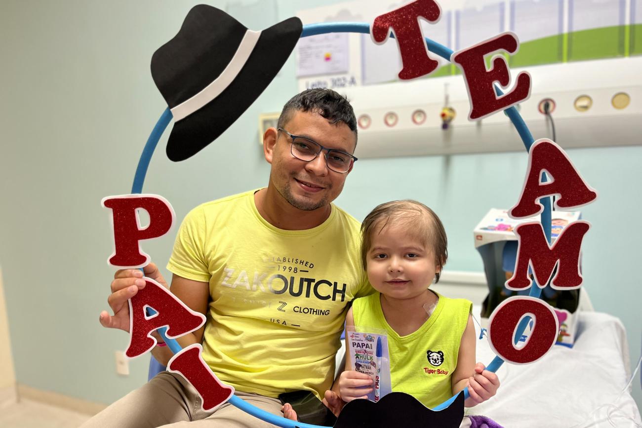 O mecânico Valber Costa, de 28 anos, também sabe da importância do papel paterno no desenvolvimento infantil e no apoio emocional em um momento de adoecimento. “Todo ano a gente espera sempre estar bem ao lado dos nossos filhos porque é uma data importante. E é muito bom estar ao lado do meu filho, principalmente diante dessa situação que ele está passando. Às vezes peço forças para passar para ele, mas acabo percebendo que é ele quem nos fortifica nesse momento que não é fácil”, afirmou o pai de Helber Lorenzo, de 4 anos, que luta contra a leucemia. “Meu papai é o Hulk!”, disse o menino, após o discurso emocionado do pai.
