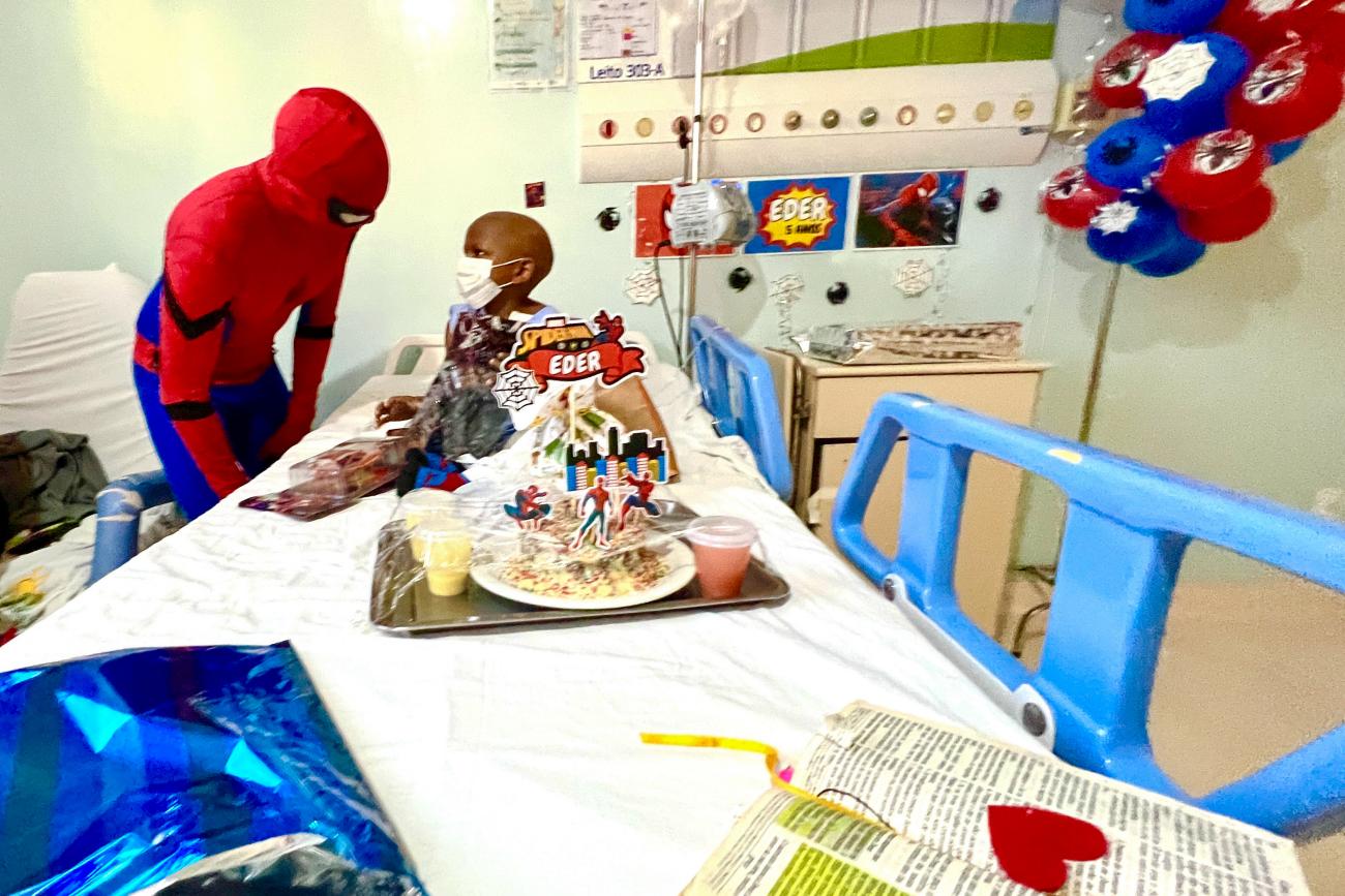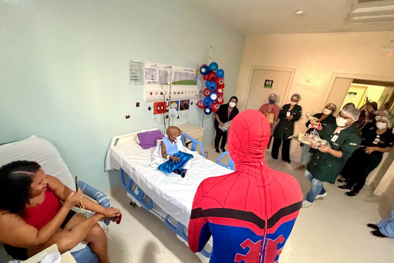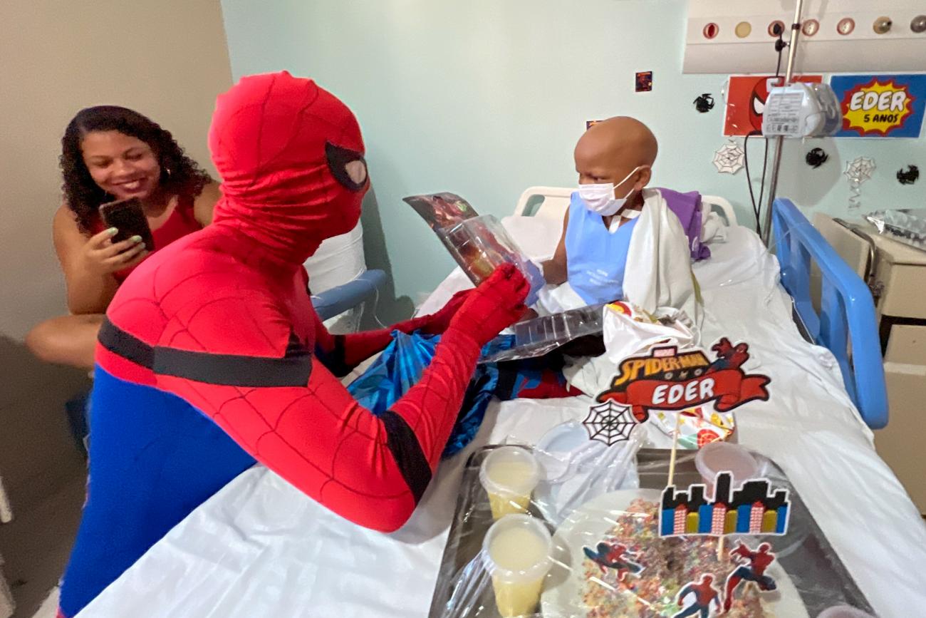 Paciente do Oncológico Infantil ganha festa temática inspirada em super-herói