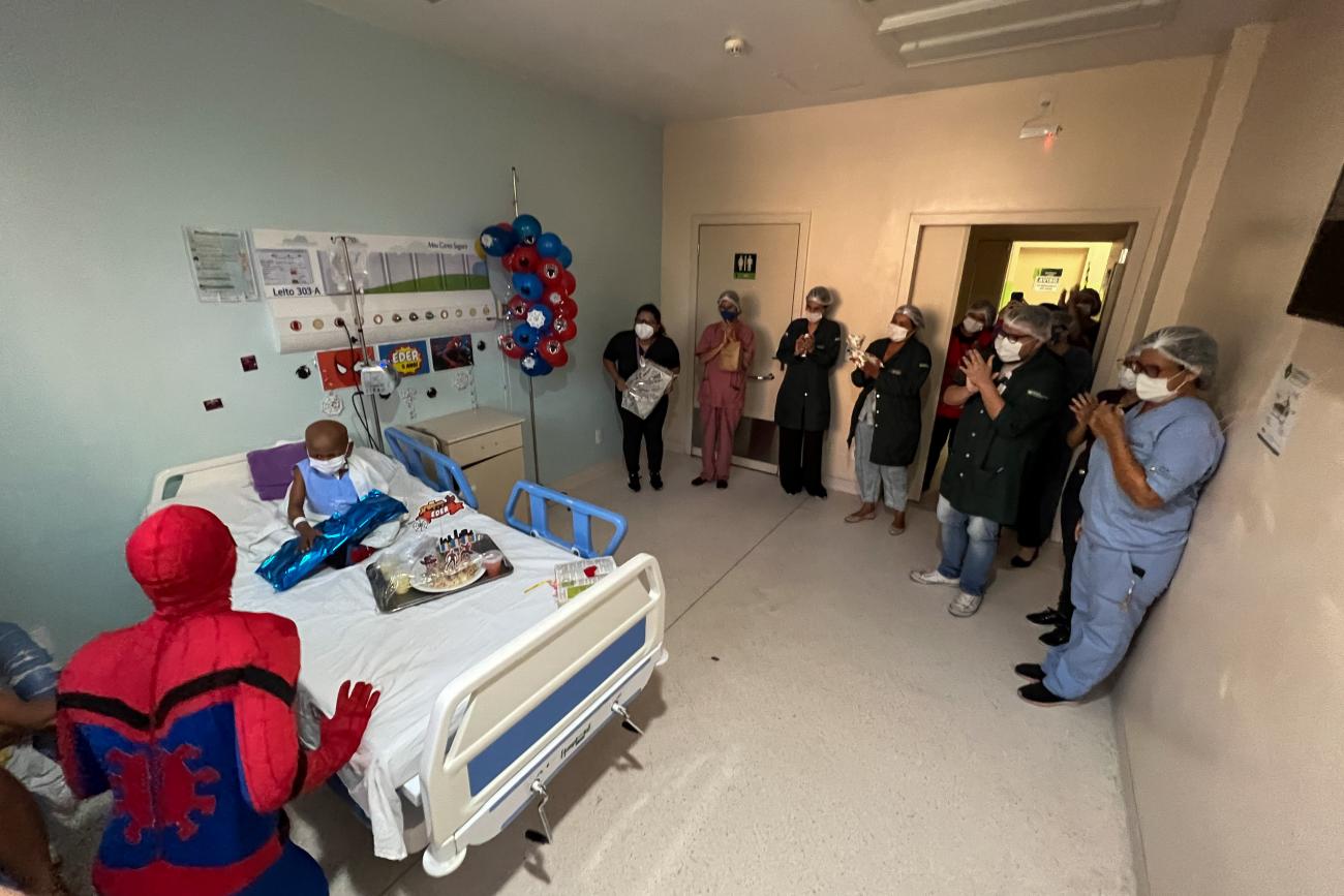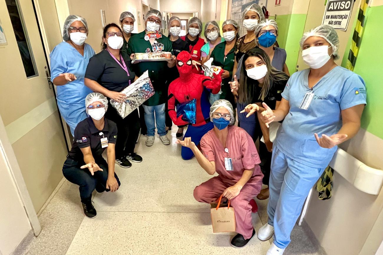 O Hospital Oncológico Infantil Octávio Lobo (Hoiol) realizou no fim da tarde de segunda-feira (14) mais uma festa de aniversário. O protagonista da vez foi Eder Gabryel dos Santos, de 5 anos, que compartilhou o momento de celebração com colaboradores, voluntários e, ao lado da mãe, Glauciane Cruz, de 34 anos, comemorou a presença do Homem-Aranha, seu personagem favorito. O tema inspirou também os presentes do garoto, que ganhou bonecos do super-herói.