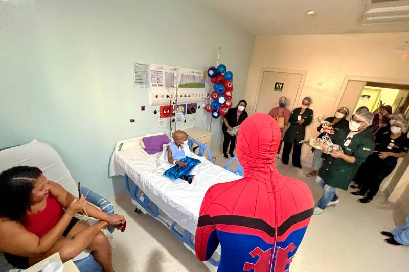 “Ele é fanático e desde muito pequenino fala que ama o Homem-Aranha, que é o personagem favorito dele. Ele sempre me pediu uma festinha assim, mas essa é a primeira vez que tem um bolinho de aniversário como esse. Não esperava que ele fosse ter isso no hospital. Estou muito feliz”, afirmou Glauciane.