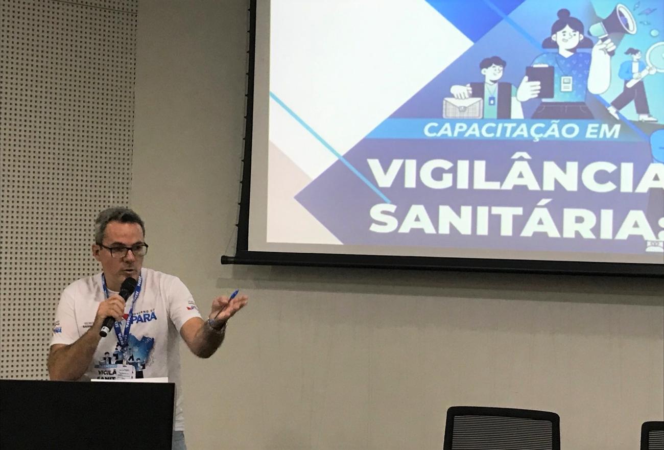 Diretor do Departamento de Vigilância Sanitária da Sespa, Marcus CouraAinda neste primeiro dia, foram abordados os seguintes temas: “Estrutura Organizacional do Departamento de Vigilância Sanitária da Sespa”, por meio do seu coordenador, Marcus Coura; “Apresentação das competências da Divisão de Vigilância em Serviços (Divsev) e suas subdivisões (Ceciras e NSP Hemovigilância); “Apresentação das competências da Divisão de Vigilância em Estrutura (Divest) e a Importância do Projeto Arquitetônico”; “Apresentação das competências Divisão de Vigilância em Produtos (DIVPD)”, “Legislação aplicada à Vigilância Sanitária”; “Projeto de Melhoria do Processo de Inspeção Sanitária em Serviços de Saúde e de Interesse à Saúde” e “Monitoramento dos Dados do Estado do Pará no Painel Power BI/Anvisa”.