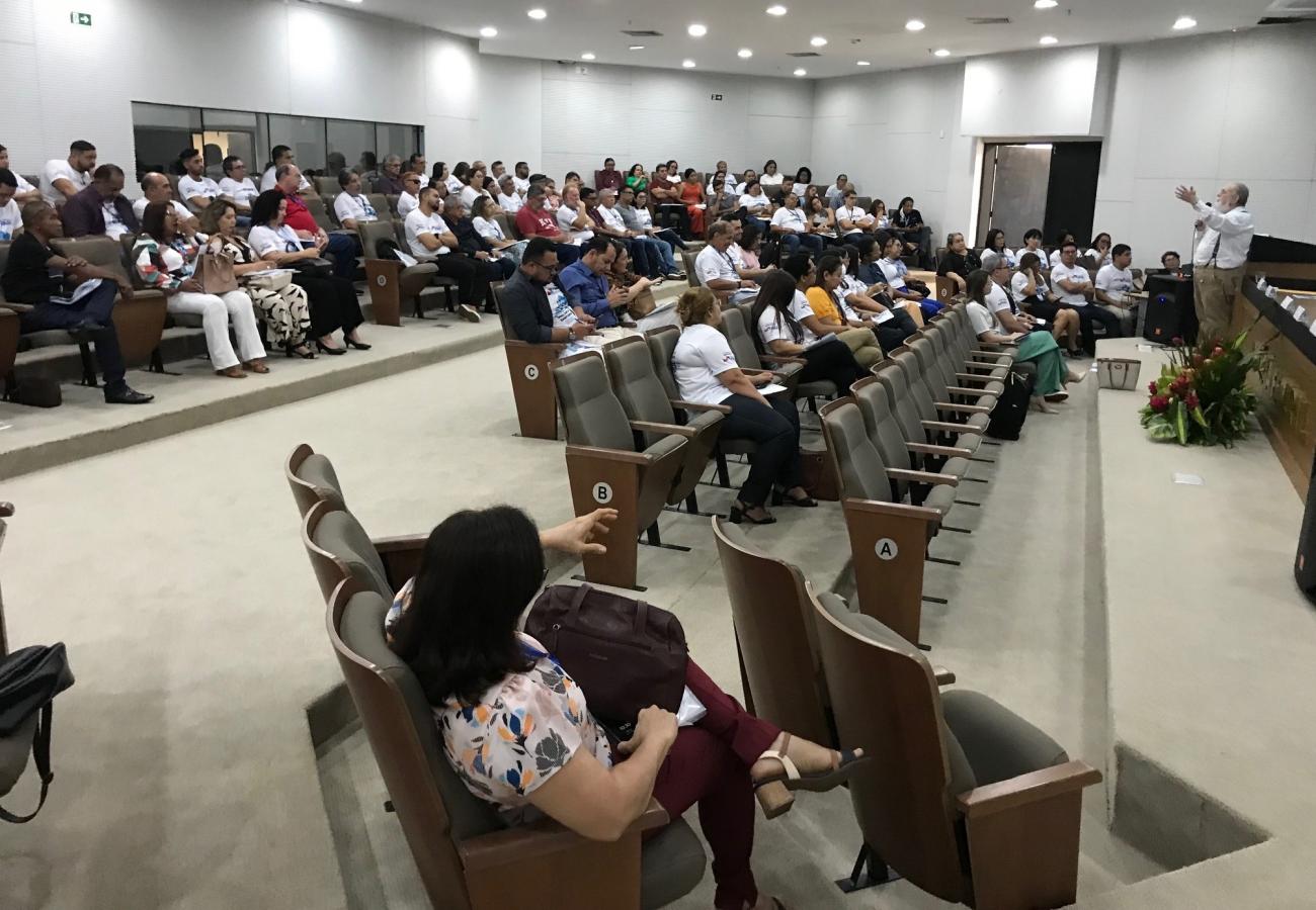 Cerca de 150 profissionais de saúde que atuam em Vigilância Sanitária estão reunidos para três dias de capacitação sobre o tema, realizado pela Secretaria de Estado de Saúde Pública (Sespa) no auditório da Superintendência Regional da Polícia Federal, em Belém.