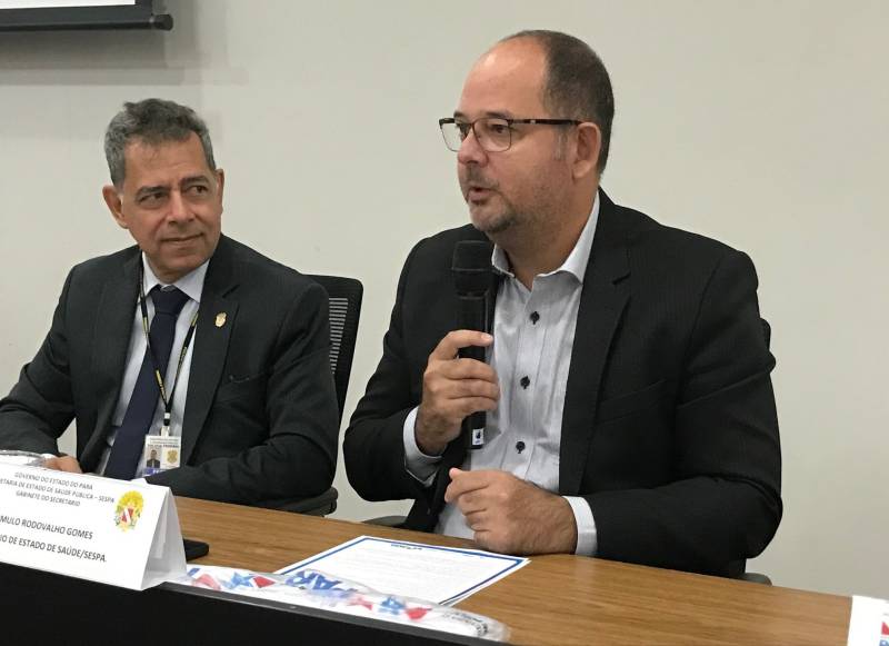 Superintendente da PF no Pará, Roberto Peres, e o titular da Sespa, Romulo RodovalhoO objetivo do encontro é o fortalecimento das ações e atuações do Nível Central da Sespa e de seus 13 Centros Regionais de Saúde, disponíveis em locais estratégicos do Pará. “Ações que visam a qualificação e a harmonização do processo de inspeção sanitária em serviços de saúde no Estado precisam sempre de servidores capacitados e a nossa função, enquanto Sespa, é manter o foco na qualidade de atendimento e na segurança das pessoas”, destacou o secretário de Saúde do Pará, Rômulo Rodovalho, durante a abertura das atividades.