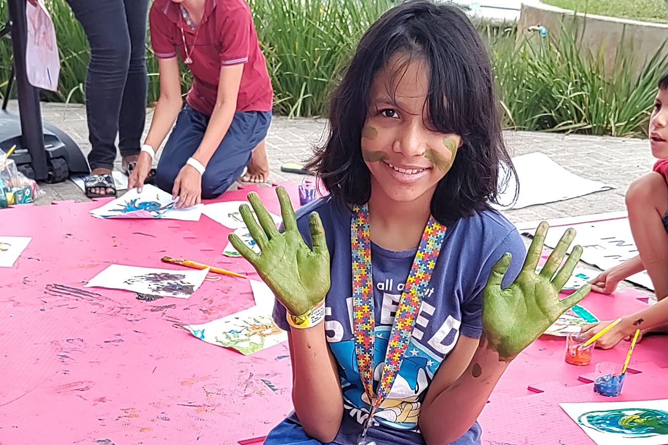 Diagnosticado com autismo e paralisia cerebral, Luiz Ferreira, de oito anos, participou deste primeiro dia de evento acompanhado da mãe, Samara da Silva, de 40 anos, que ressalta a importância do evento para levar mais informação e menos preconceito.