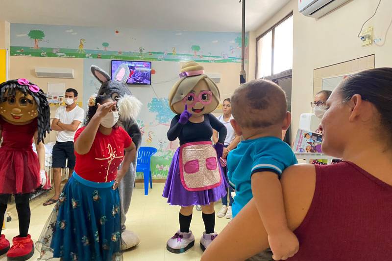 Em alusão ao Dia da Infância, celebrado nesta quinta-feira (24), o Hospital Geral de Tailândia (HGT) realizou uma ação especial voltada para os pacientes infantis internados e também àqueles que aguardavam atendimento na unidade hospitalar. Sob a coordenação do Grupo de Trabalho de Humanização (GTH), a iniciativa teve o intuito de proporcionar um momento de diversão para as crianças, tornando a permanência no hospital mais acolhedora com a participação de personagens de histórias infantis.