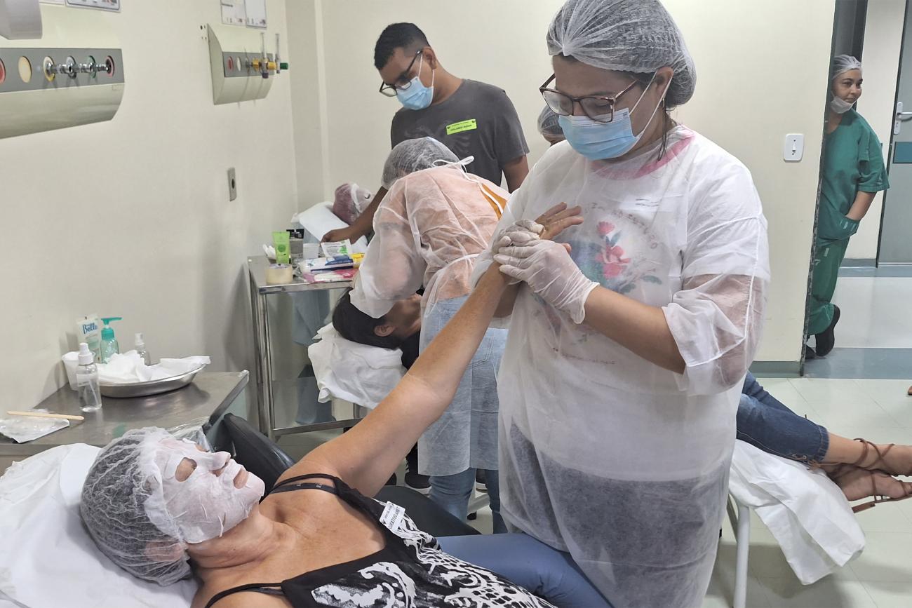 O relato é da dona Maria das Graças dos Santos, 58 anos. Ela é paciente oncológica do Hospital Regional do Baixo Amazonas Dr. Waldemar Penna (HRBA), em Santarém, oeste do Pará. No local, nesta sexta-feira (25), uma ação intitulada "Dia de Diva" ofereceu vários procedimentos estéticos às pacientes.
