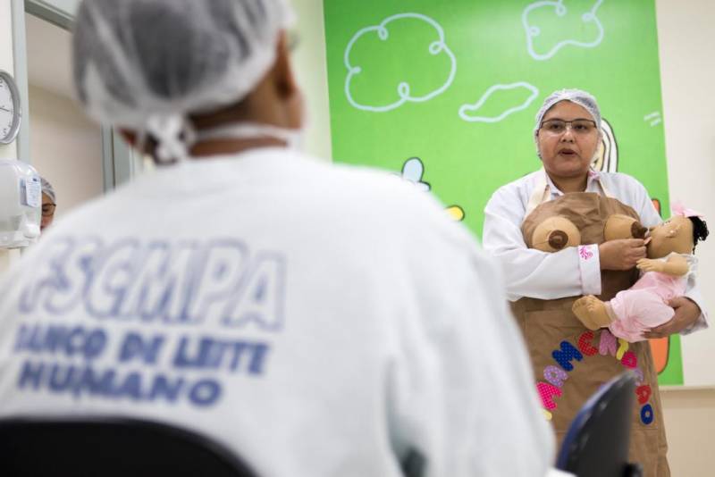 Na Santa Casa, gestantes e puérperas recebem orientações para o aleitamento materno. Por meio do Banco de Leite Humano também são promovidas campanhas de orientação, incentivo ao aleitamento e doação de leite humano.