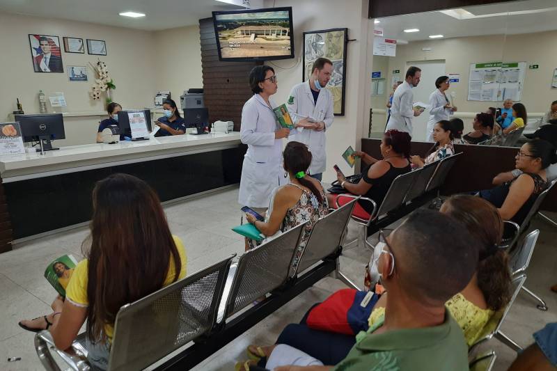 Usuária Sílvia Helena recebendo o folder da campanhaA usuária Sílvia Helena, 56 anos, moradora de Ananindeua, município da Região Metropolitana de Belém (RMB), aguardava por uma consulta quando disse que já conversou com os filhos sobre a doação de seus órgãos. “Eu fico muito feliz em ser uma potencial doadora, pois eu perdi a minha mãe para um câncer no pulmão, e naquele momento que a perdi não tinha ninguém compatível para fazer um transplante. Também tenho uma irmã que só tem um rim funcionando. Já pensou em ter algo de nós fazendo outra pessoa viver? Isso é muito bonito!”, afirmou Sílvia.