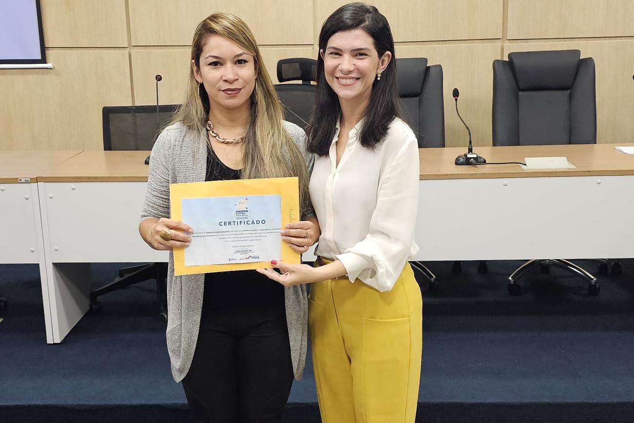 A segunda palestra foi ministrada pela coordenadora estadual de Políticas Para o Autismo da Sespa, Nayara Barbalho, que dividiu a sua apresentação sobre o atendimento e direitos das pessoas com autismo no estado em quatro eixos: saúde, educação, assistência social e legislação. Foram apresentados os avanços nos últimos quatro anos da gestão estadual em políticas para o autismo, com a entrega de Núcleos de Atendimento ao Transtorno do Espectro Autista (Natea), emissão de Carteiras de Identificação da Pessoa com Transtorno do Espectro Autista (Ciptea), entre outras medidas que vêm transformando o Pará em referência no atendimento à pessoas com autismo.