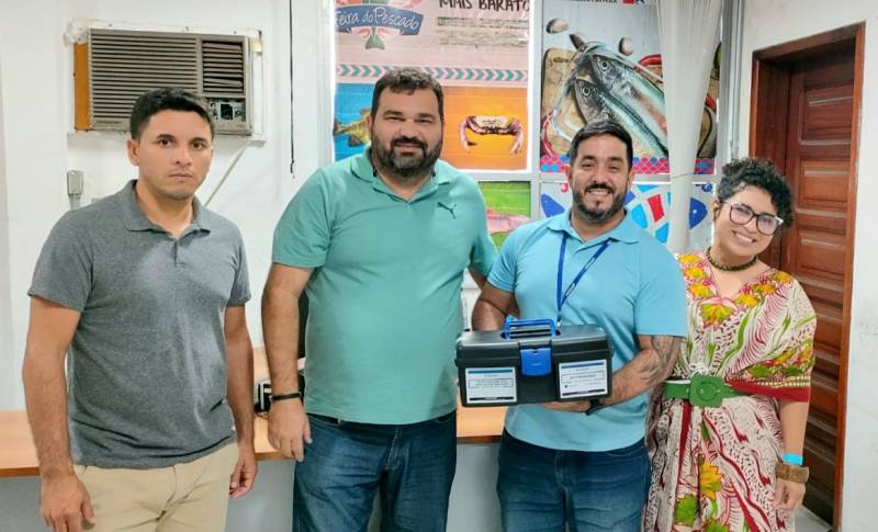 Na manhã desta segunda-feira (11), o secretário Giovanni Queiroz entregou o kit de monitoramento à engenheira de pesca, Ana Carolina Freitas, que representou a Prefeitura de Benevides. O repasse contou com a participação, também, do coordenador de Aquicultura da Sedap, Alan Pragana, e do engenheiro de pesca da secretaria, Thiago Cruz.