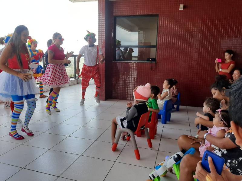 Profissionais do Abelardo Santos dedicam as sextas-feiras para arrancar sorrisos de crianças e adultos