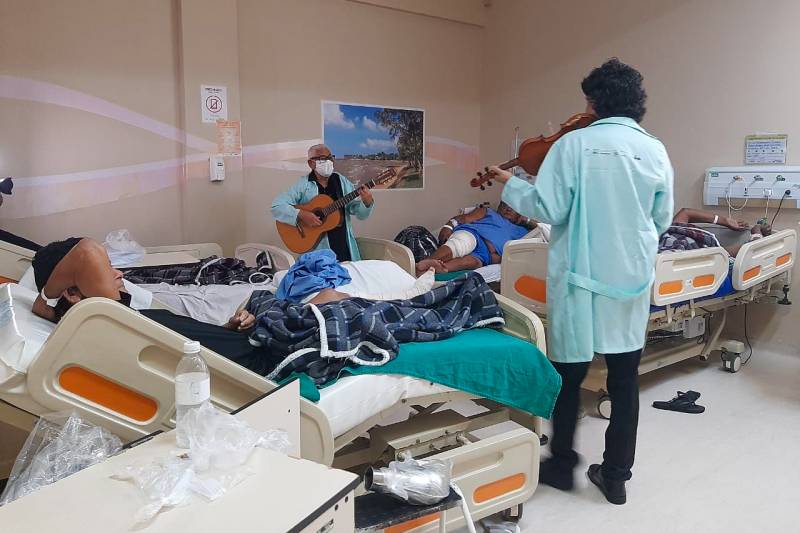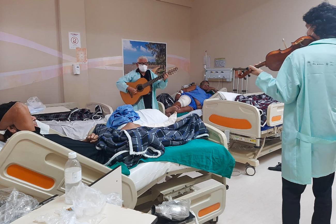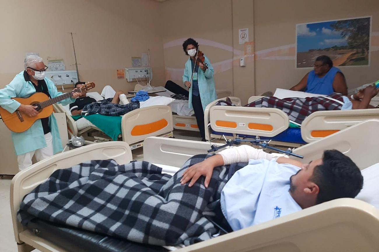 A musicoterapia já faz parte da rotina de atividades com os pacientes do HPEG. Atualmente,  iniciativa é realizada quinzenalmente, aos domingos, e de acordo com a disponibilidade de músicos voluntários.
