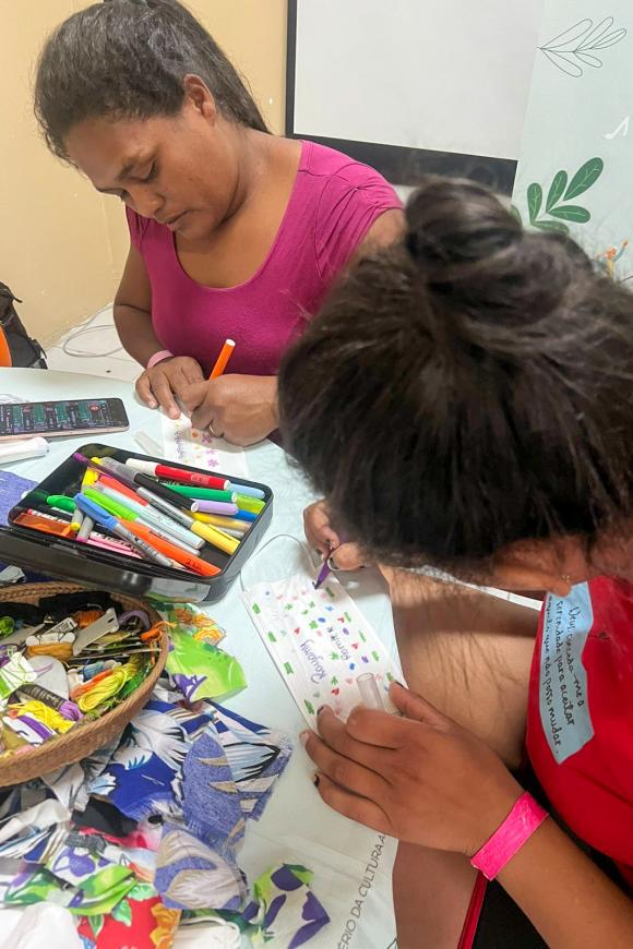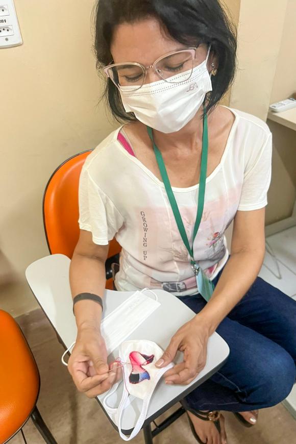 Já na oficina de customização de máscaras, a pescadora Ercilia da Silva Barros, de 48 anos, mostrou toda a sua criatividade.