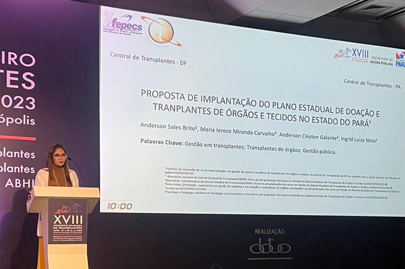 A Secretaria de Estado de Saúde Pública (Sespa), por meio da Central Estadual de Transplantes (CET), participa do XVIII Congresso Luso-Brasileiro de Transplantes, em Florianópolis, Santa Catarina, organizado pela Associação Brasileira de Transplante de Órgãos (ABTO). O evento é referência nas discussões sobre o tema e reúne profissionais de saúde de todo o País que atuam na área. A coordenadora da Central Estadual de Transplantes do Pará, Ierecê Miranda, apresentou na manhã desta sexta-feira (29) a “Proposta de Elaboração do Plano Estadual de Doação e Transplantes no Estado do Pará”.