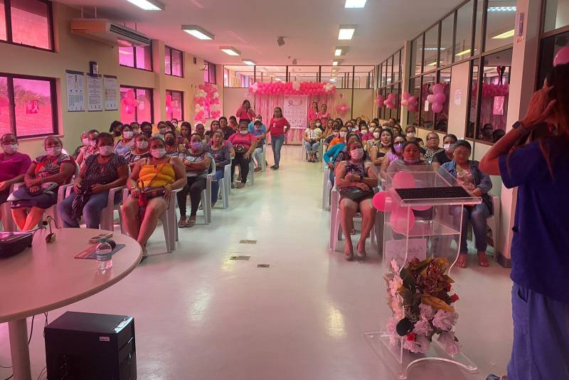 A unidade também promove palestras para informar sobre cuidados e tratamento dos cânceres de mama e do colo uterino