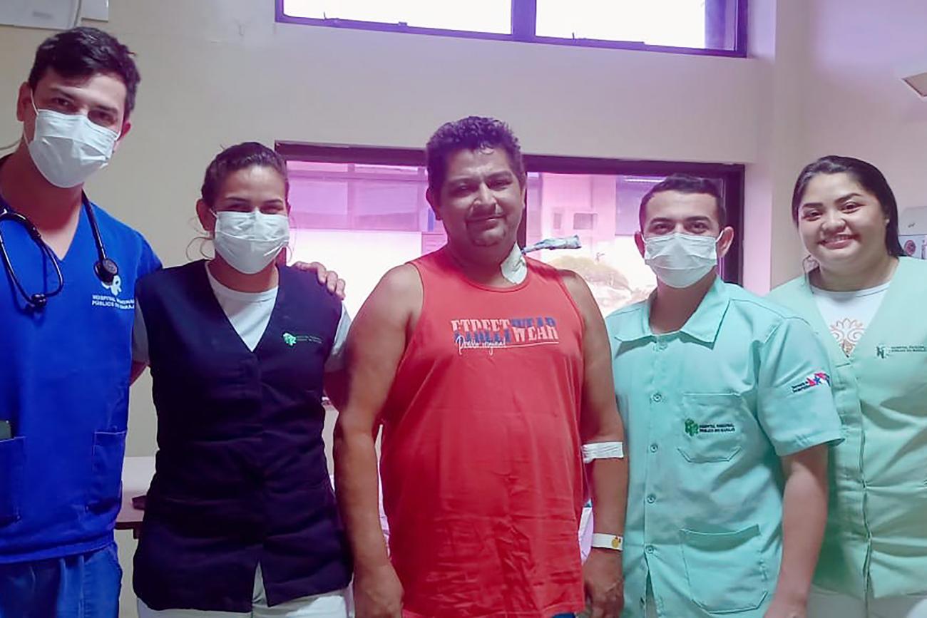 Equipe de saúde do HRPM com o usuário Benedito Tavares.