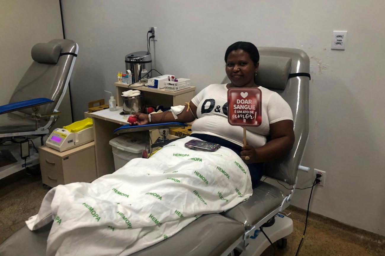 Com apoio da ação voluntária promovida no Bairro Liberdade, na unidade do Hemopa em Altamira, foram arrecadadas 09 bolsas  de sangue, dentre os 13 candidatos que se voluntariaram. A aniversariante, Eliene Pereira, foi uma das doadoras dessa campanha e como forma de festejar mais um ano de vida, ela realiza sua doação de sangue em nome da solidariedade e do amor ao próximo. “Para mim é uma satisfação muito grande de estar hoje aqui, em meu aniversário para doar sangue para as pessoas, porque eu já passei por esse momento de precisar da doação. Então, eu estou aqui para ajudar várias pessoas que também vão precisar da doação de sangue. Desde já agradeço e peço para que as pessoas venham doar e salvar vidas”, comenta a voluntária.