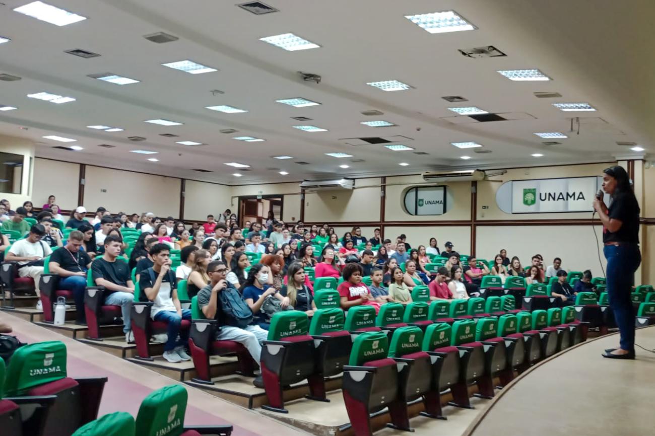 Uma das programações do projeto foi realizada na Universidade da Amazônia (Unama) de Ananindeua, localizada na Região Metropolitana de Belém e contabilizou cerca de 280 alunos que participaram da atividade de sensibilização.