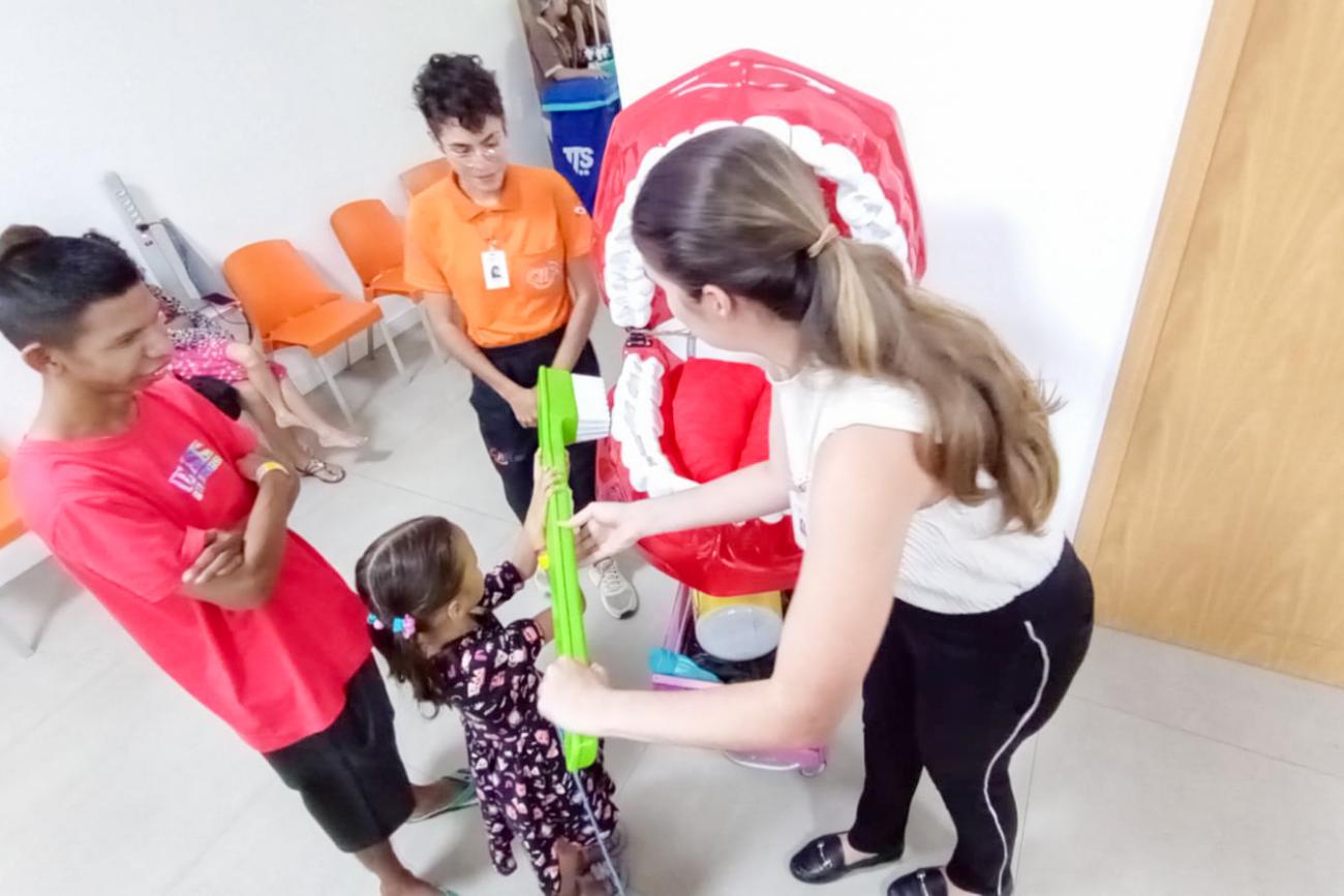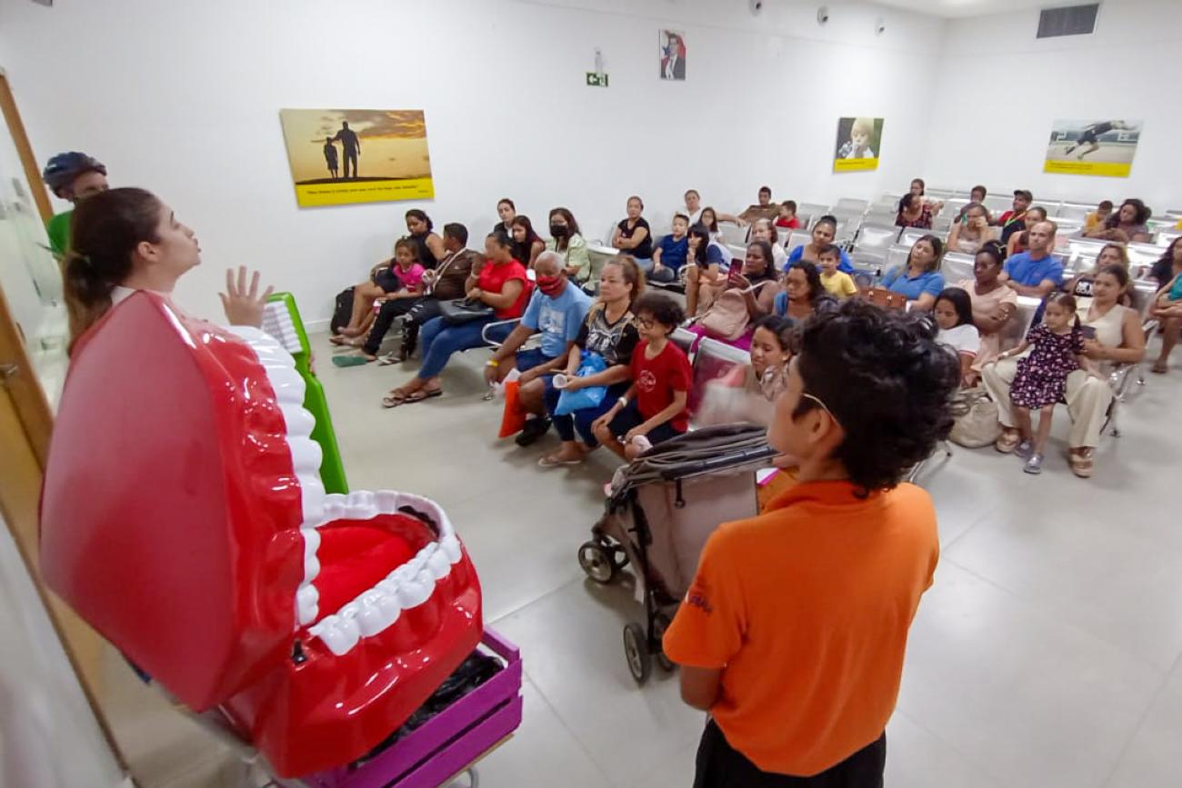 Organizado pelo Grupo de Trabalho de Humanização (GTH), em parceria com a equipe multiprofissional do CEO e do Arte e Cultura, a ação lúdica utilizou macro modelos odontológicos de higiene oral pessoal por intermédio da cirurgiã-dentista bucomaxilofacial, Marcele Miranda, que repassou orientações sobre a forma correta de realizar a higiene bucal com ênfase à importância da boa prática.