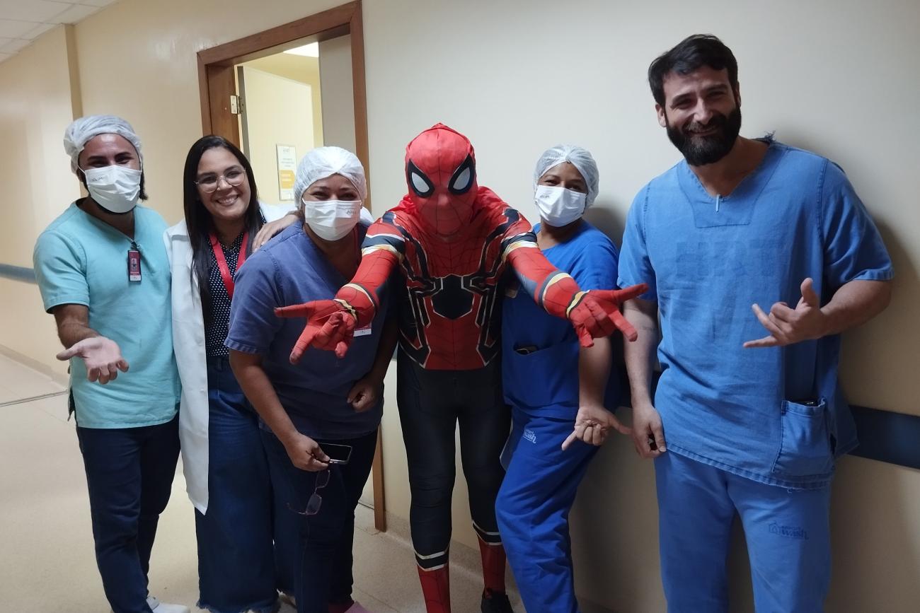 A surpresa não se limitou apenas aos pacientes mirins. Colaboradores e funcionários também foram pegos de surpresa com a presença do Homem-Aranha pelos corredores do hospital.