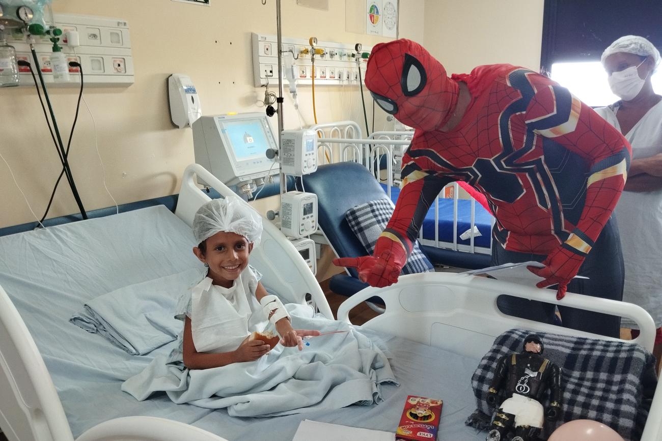 "Foi emocionante ver a reação das crianças e até mesmo dos adultos. Ver aqueles sorrisos no rosto delas fez todo o esforço valer a pena", relata Alessandro dos Santos Oliveira, colaborador que se voluntariou para se fantasiar do super-herói.