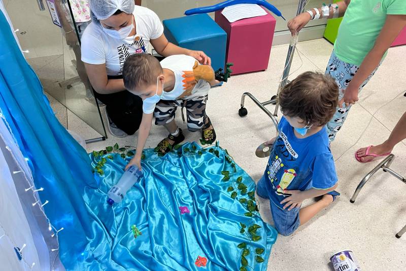 A brinquedoteca do segundo andar do Hospital Oncológico Infantil Octávio Lobo (Hoiol), em Belém, ganhou uma decoração especial na tarde da sexta-feira (22), Dia Mundial da Água. Com o intuito de ressaltar a importância do uso sustentável do recurso hídrico e promover a conscientização sobre como evitar a poluição e contaminação dos ambientes aquáticos, colaboradores reuniram pacientes e acompanhantes em um bate-papo interativo.