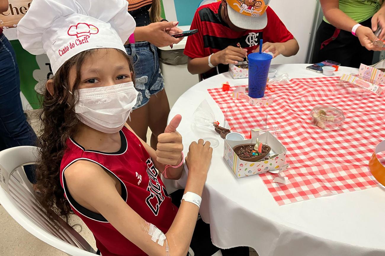 A data foi celebrada de forma lúdica, com edições especiais do Projeto “Pequenos Chefs”, que incentiva crianças e adolescentes na descoberta da arte de preparar alimentos. Desta vez, a oficina foi voltada à preparação de alfajor e ovos de Páscoa, para promover um ambiente de socialização e criatividade, além de proporcionar o acolhimento religioso, com a finalidade de amenizar os anseios e medos durante o período de hospitalização, explicou a coordenadora de Humanização, Natacha Cardoso.Alegria estampada no olhar ajuda a enfrentar os desafios da rotina de tratamento