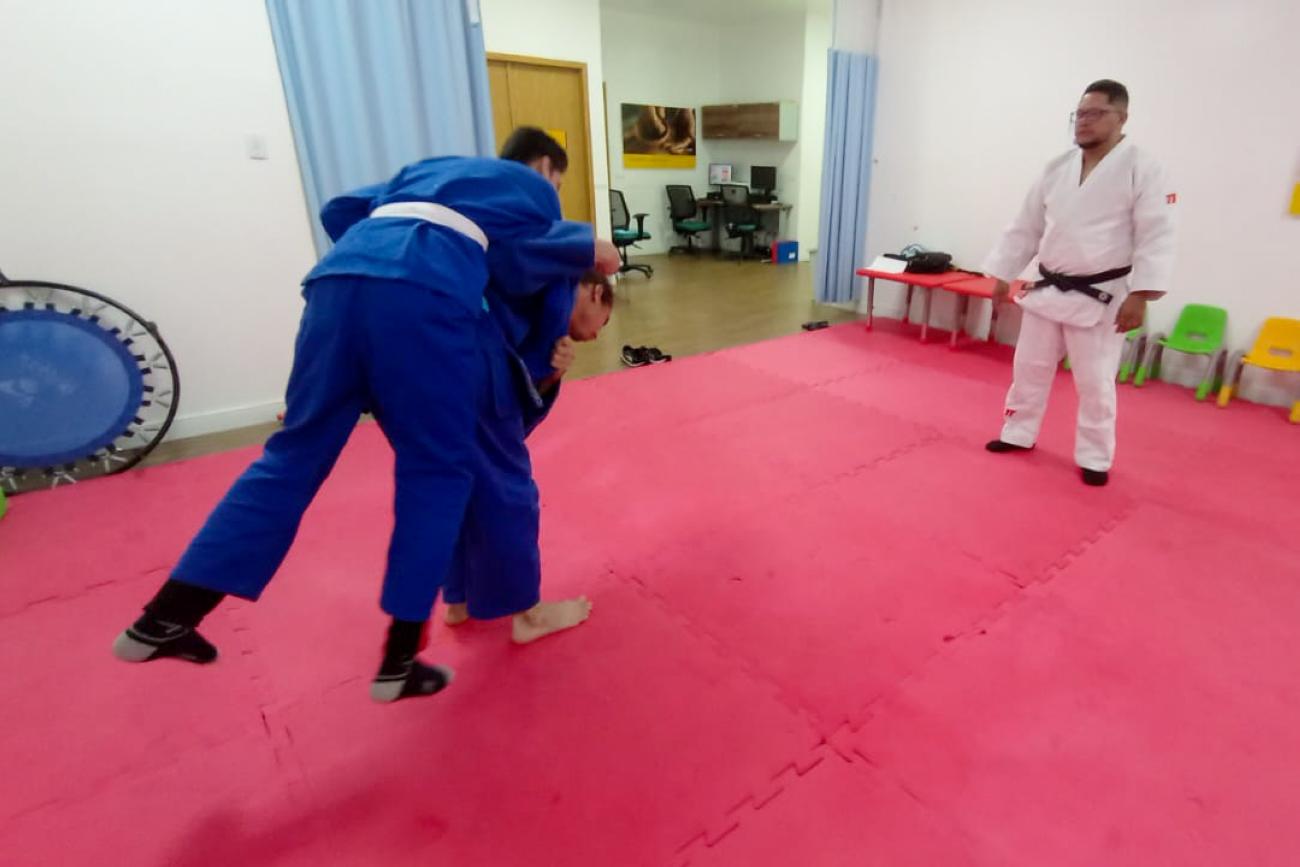 Benefícios - O terapeuta, que conduz o judô adaptado, destacou que são vários os benefícios das atividades físicas. “Para um usuário com diagnóstico de paralisia cerebral, por exemplo, estimula o tônus muscular, o equilíbrio corporal, o controle de tronco, a coordenação motora e noção espacial, tudo para que ele possa ter também inclusão social na sua rotina fora do CIIR”, disse ele, ao ressaltar que, de acordo com o perfil do reabilitando, a equipe de profissionais de Educação Física monta o plano terapêutico que inclui esporte adaptado como suporte no acompanhamento clínico.