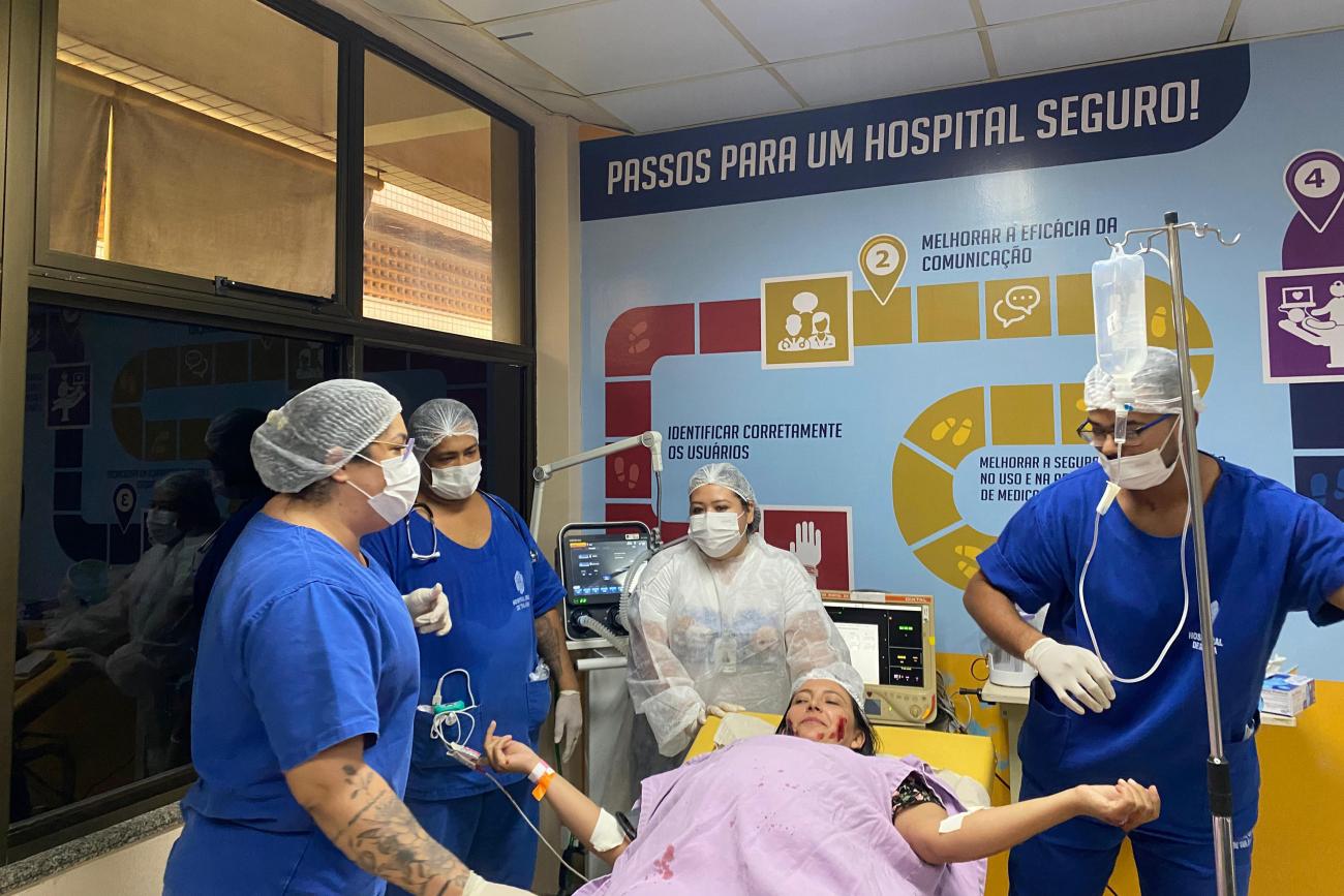 "Cada maquiagem e preparação das lesões contou com a orientação dos profissionais da Assistência, para tornar os ferimentos realistas", explicou Dyones Alves, enfermeiro no HGT e responsável pela preparação das vítimas.