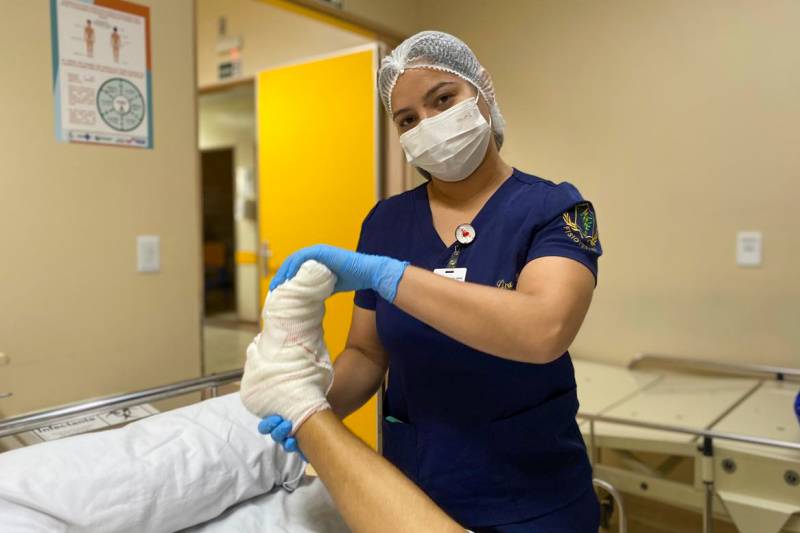 A fisioterapeuta do HGT, Elynara Lyra, explica que os profissionais atuam de forma interdisciplinar, para a promoção, proteção e recuperação da saúde do paciente, objetivando prevenir ou minimizar complicações e sequelas a partir do gerenciamento da mobilidade, de maneira segura e eficaz, através da realização de triagem, avaliação, habilitação e reabilitação das funções motoras.