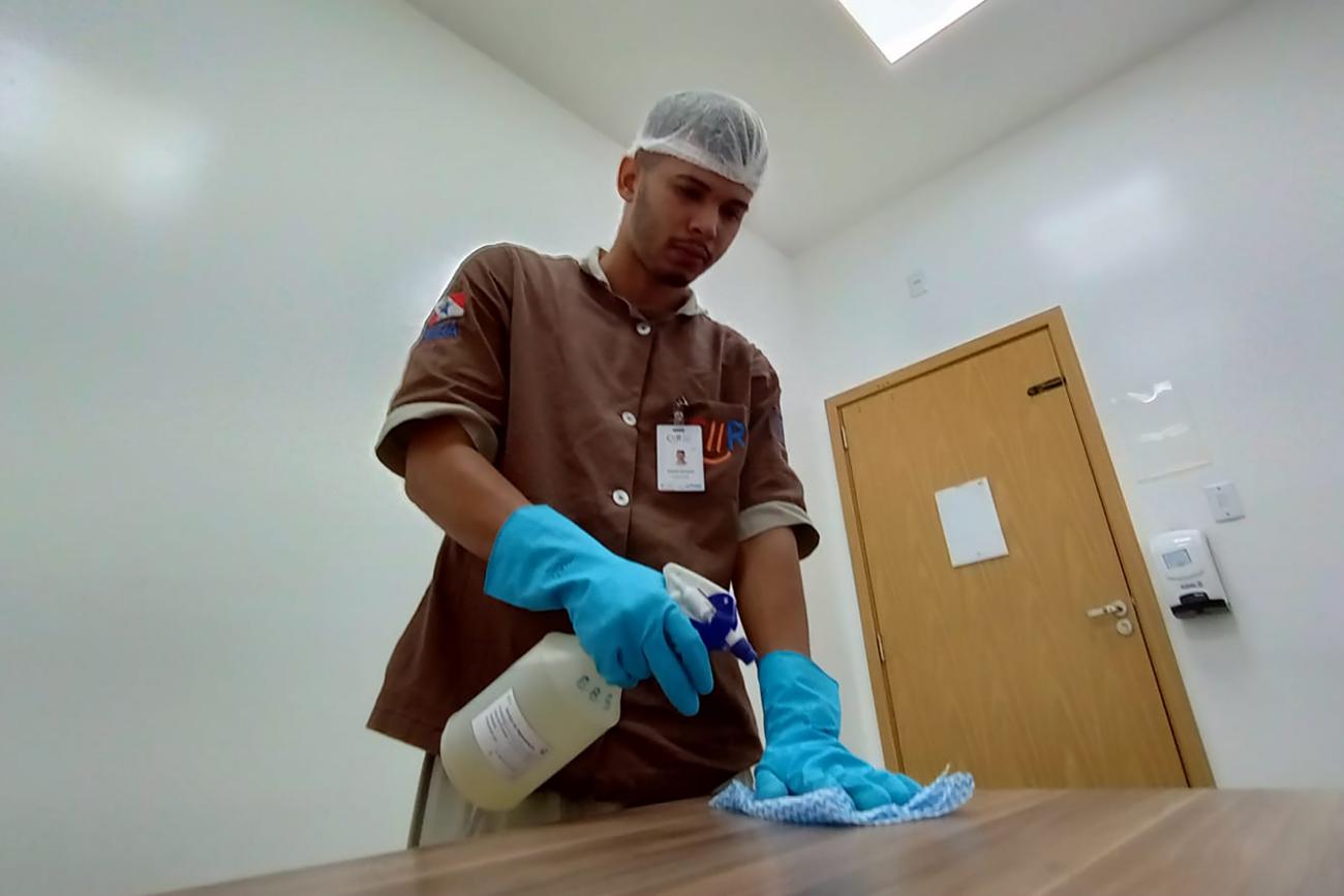 De outro lado, com a perspectiva de crescimento profissional, Rodrigo Rodrigues, de 26 anos, iniciou a sua carreira no CIIR há um mês atuando no Serviço de Higienização e Limpeza (SHL). O jovem que atualmente está próximo de concluir o curso técnico de Vigilância em Saúde planeja construir carreira na instituição.