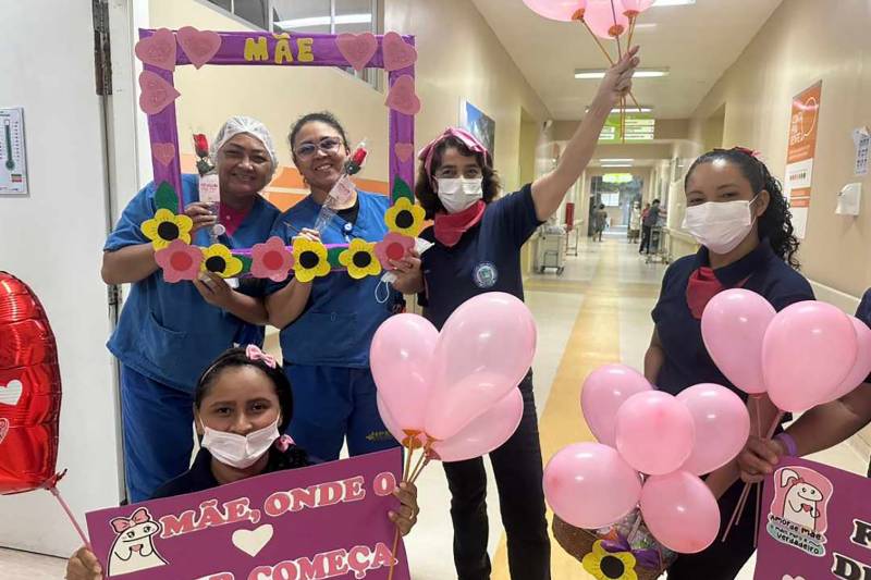 O Hospital Público Estadual Galileu (HPEG), localizado na Região Metropolitana de Belém, foi tomado por uma atmosfera diferente e especial nesta sexta-feira, 10. É que um grupo de voluntários e profissionais de saúde percorreu as instalações da unidade do Governo do Pará, com cartazes, balões, cânticos e brindes, em uma ação de humanização, alusiva ao Dia das Mães, comemorado no domingo, 12.