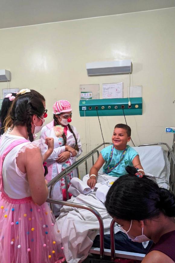 Leenon Maycon Rocha, 8 anos, morador de Marabá, internado na clinica pediátrica, estava entre os pacientes mais entusiasmados com a visita dos palhaços. Sua expressão iluminada e sorriso contagiante evidenciaram o impacto positivo desses momentos de diversão no seu dia. "Foi muito legal! Eles me fizeram esquecer que estou no hospital e me senti feliz como se estivesse em casa brincando com meus amigos", compartilhou o paciente mirim.