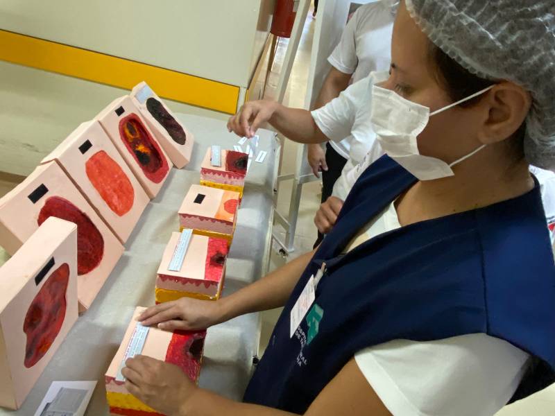 A equipe responsável pela atividade iniciou a capacitação na última semana e segue sendo realizada em todos os setores de assistência, abrangendo enfermeiros e técnicos de Enfermagem. A capacitação, que já conta com a participação de 83 profissionais, inclui o uso de estruturas realistas em isopor, confeccionadas pela própria comissão. Essas estruturas são projetadas para simular todos os estágios das lesões por pressão, abrangendo desde as diferentes camadas da pele até os tipos de tecidos desvitalizados e o tecido viável.