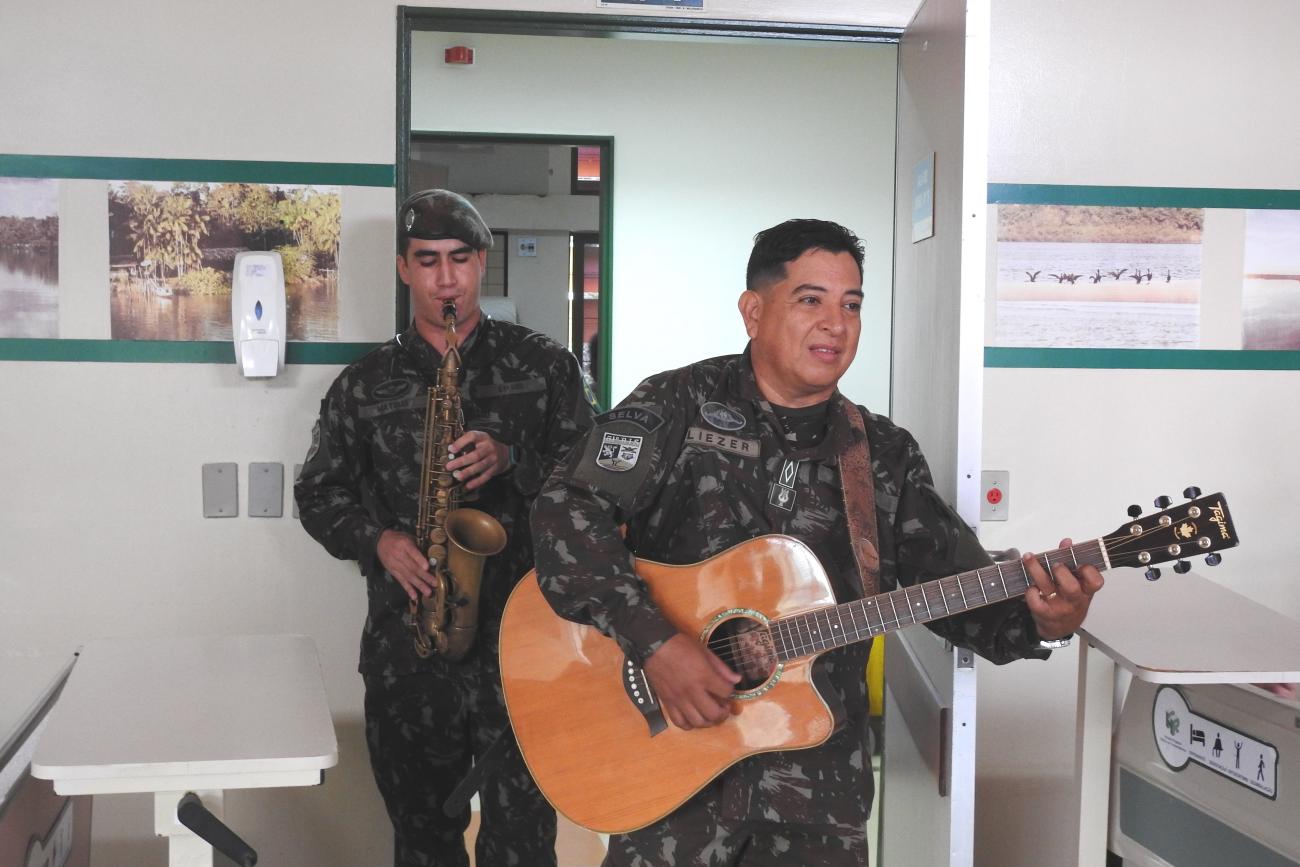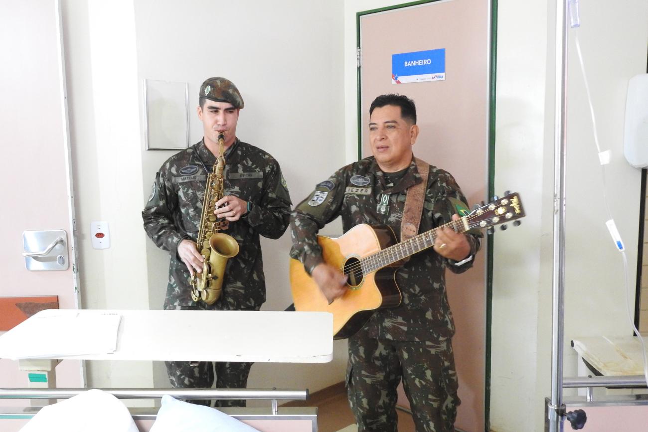 Com instrumentos musicais e uma voz firme, os militares visitaram as Clínicas Médica e Cirúrgica e apresentaram várias canções religiosas muito conhecidas pelo público. Acompanhantes e pacientes choraram de emoção ao ouvir cada melodia das músicas. Os corredores ficaram movimentados de tanta alegria.