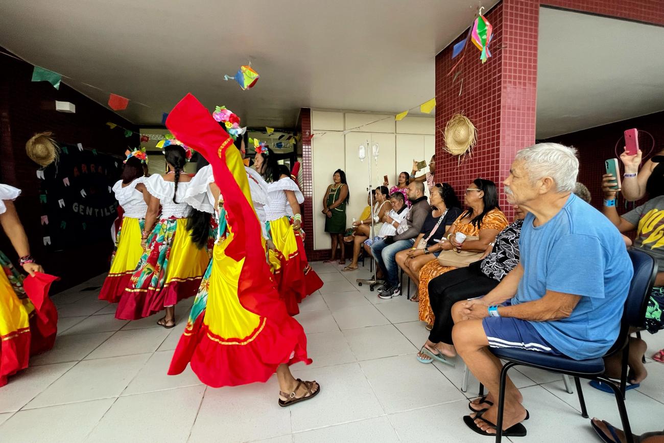 Pacientes de longa permanência no Hospital Regional Dr. Abelardo Santos (HRAS), no Distrito de Icoaraci, em Belém, foram convidados a participar de uma tarde de música e dança durante o “Arraiá da Gentileza”. A iniciativa, realizada nesta sexta-feira (21), no setor de nefrologia, faz parte das ações de humanização que visam melhorar a rotina e o tratamento dos usuários durante os festejos juninos.