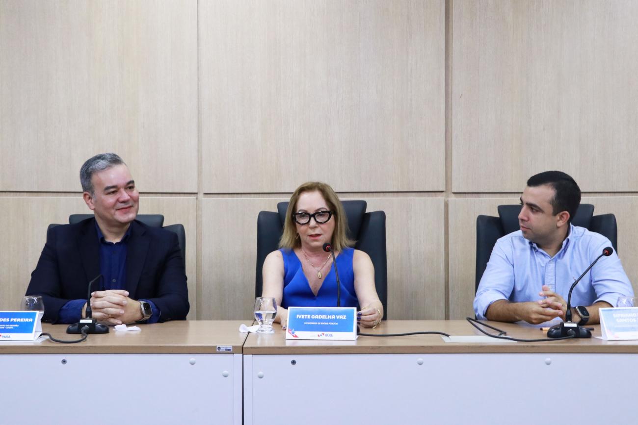 Ao lado da titular da Sespa, estiveram presentes para recepcionar os novos servidores, o secretário adjunto de Gestão Administrativa, Edney Pereira, e o secretário adjunto de Gestão de Políticas de Saúde, Sipriano Ferraz.
