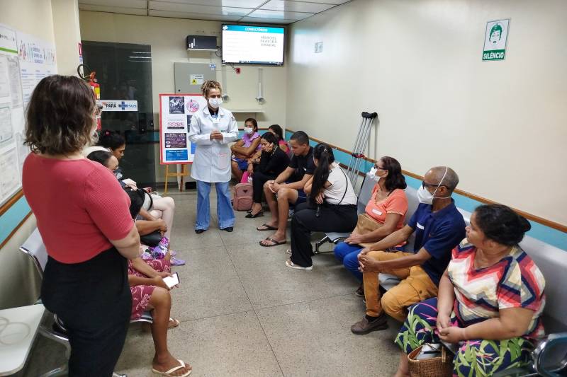 Sensibilização - A campanha de sensibilização contra o uso de drogas na unidade do Governo do Pará, gerenciado pelo Instituto de Saúde Social e Ambiental da Amazônia (ISSAA) em parceria com a Secretaria de Estado de Saúde Pública (Sespa), foi conduzida pela psicóloga Keliane Cardoso, que percorreu áreas de recepção para conscientizar os pacientes.