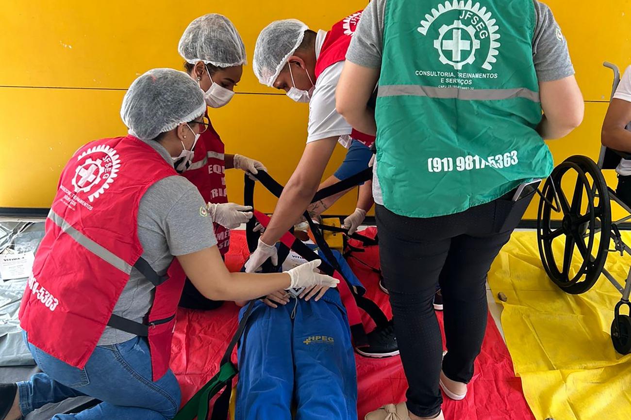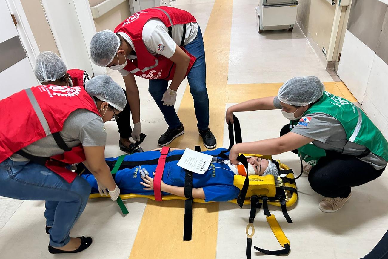 Como forma de preparar toda a equipe para atender vítimas de acidentes de grandes proporções, profissionais dos setores administrativo e assistencial do Hospital Público Estadual Galileu (HPEG), na Grande Belém, são treinados para garantir a assistência e o transporte seguro desses pacientes. A iniciativa simula possíveis situações de atendimento de emergência de várias pessoas ao mesmo tempo, vítimas de inundações, incêndios, ciclones, deslizamentos, acidentes de trânsito e outros sinistros.