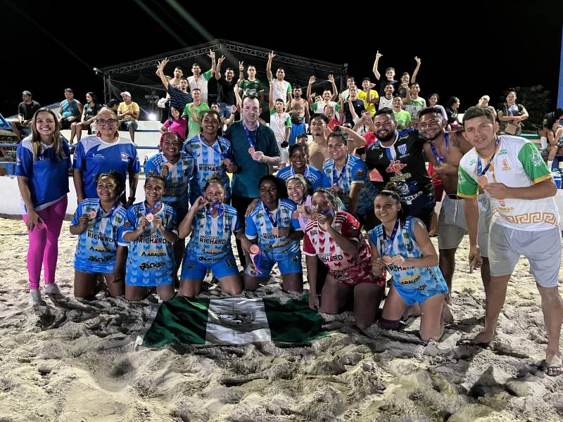 A atleta de Oeiras do Pará, da modalidade futebol de areia feminino, Rosana de Souza,  bastante emocionada falou da conquista da sua equipe que ficou com a medalha de bronze da competição. “Não foi fácil chegar até aqui, Deus sabes o que a gente enfrentou e é uma felicidade muito grande, levar esse troféu, essa premiação para Oeiras. Portel nos abraçou, recebeu a gente carinhosamente, só tenho a agradecer a todos”, disse Rosana.