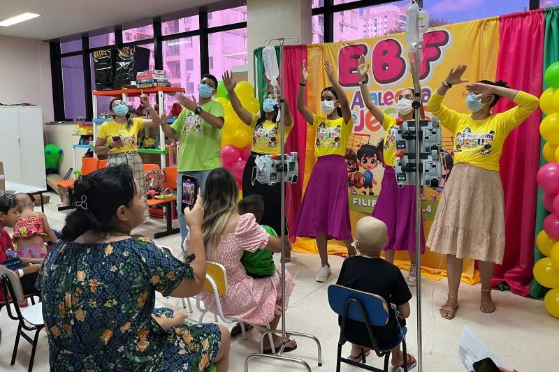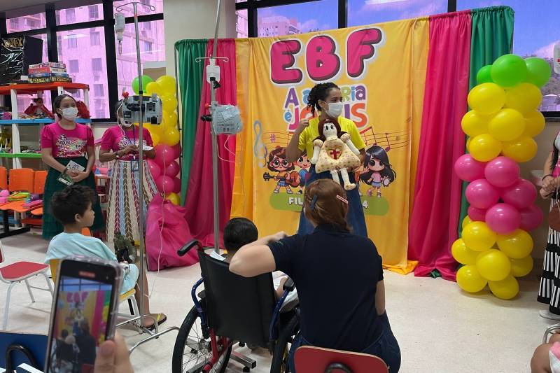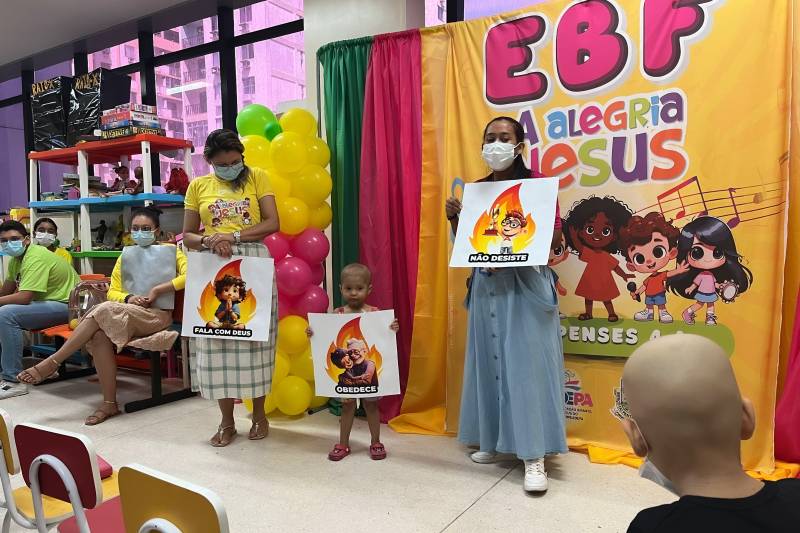 Atividades proporcionam entretenimento e integração social no ambiente hospitalarApós três dias de programação, o Hospital Oncológico Infantil Octávio Lobo (Hoiol) encerrou, nesta quinta-feira (11), a primeira edição da Escola Bíblica de Férias (EBF). Realizada em parceria com a Secretaria de Educação Infantil da Assembleia de Deus do Estado do Pará (Seiadepa), as atividades ocorreram na brinquedoteca da unidade, reunindo pacientes e acompanhantes. Neste ano, o tema foi "A alegria é Jesus", baseado no livro de Filipenses 4:4, cuja mensagem inspirou diversos momentos da programação.