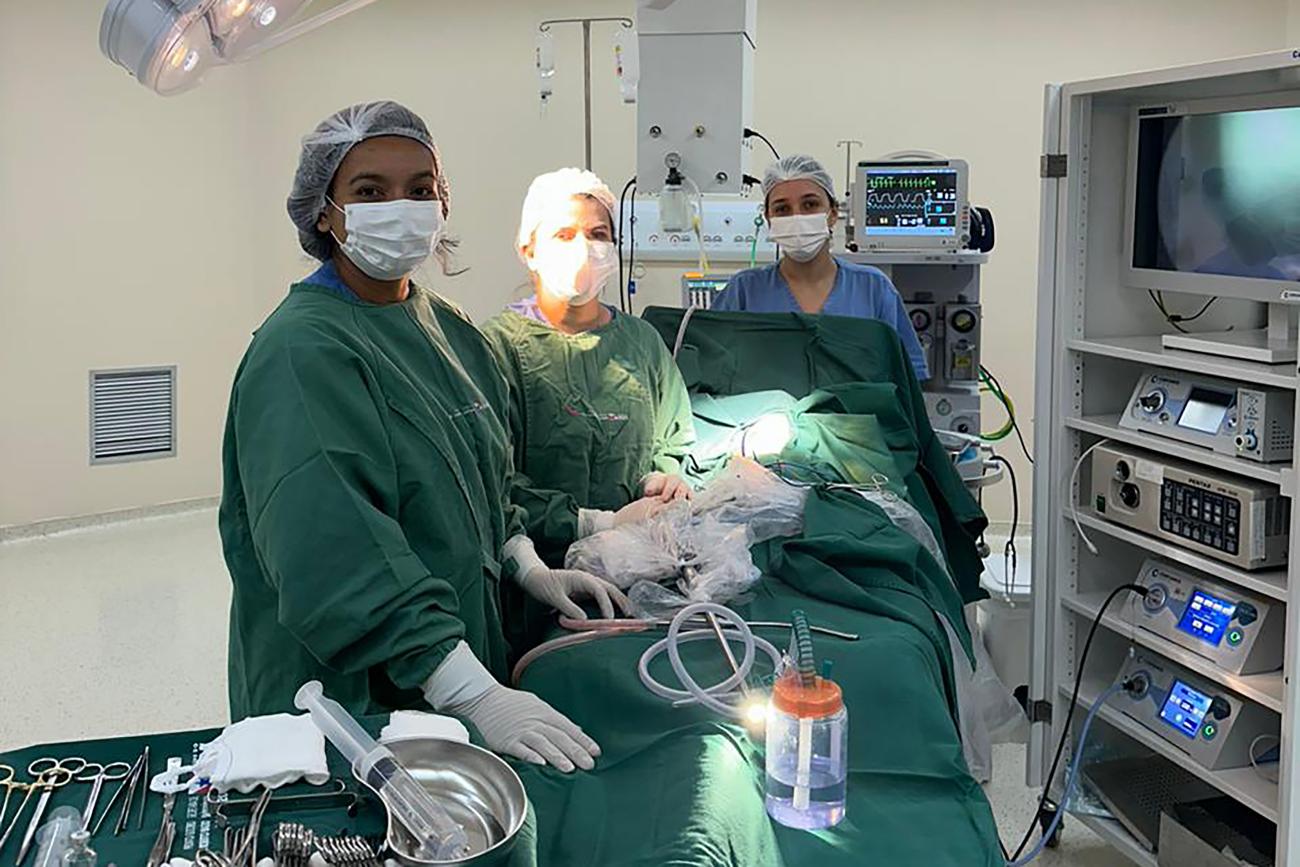 Cirurgiã Torácica Manuela Ortiz e equipe durante cirurgia.A médica, única cirurgiã torácica Pará, destaca sobre a relevância dos procedimentos minimamente invasivos, da tecnologia aplicada às cirurgias que causam menor impacto no pós-operatório e, consequentemente, na recuperação, que acaba sendo mais rápida.