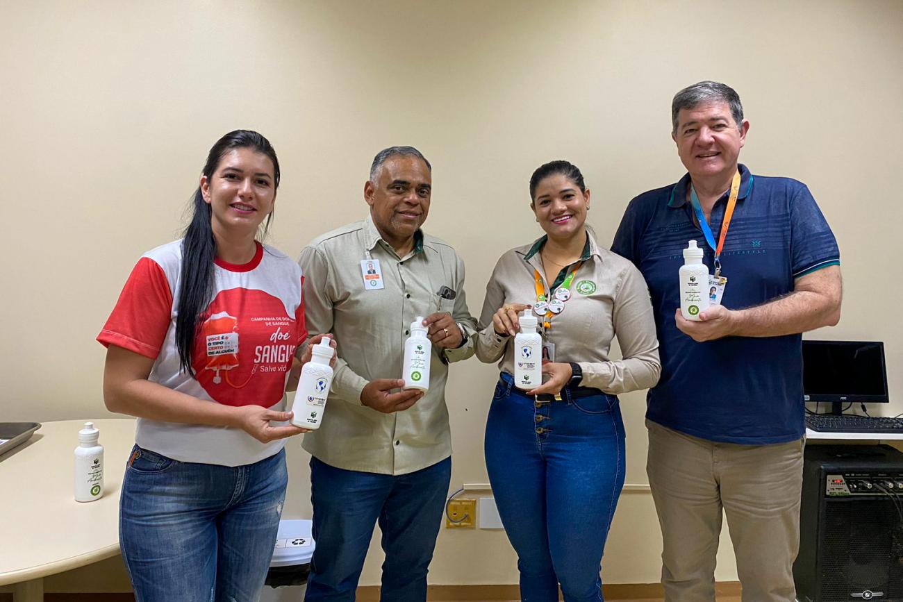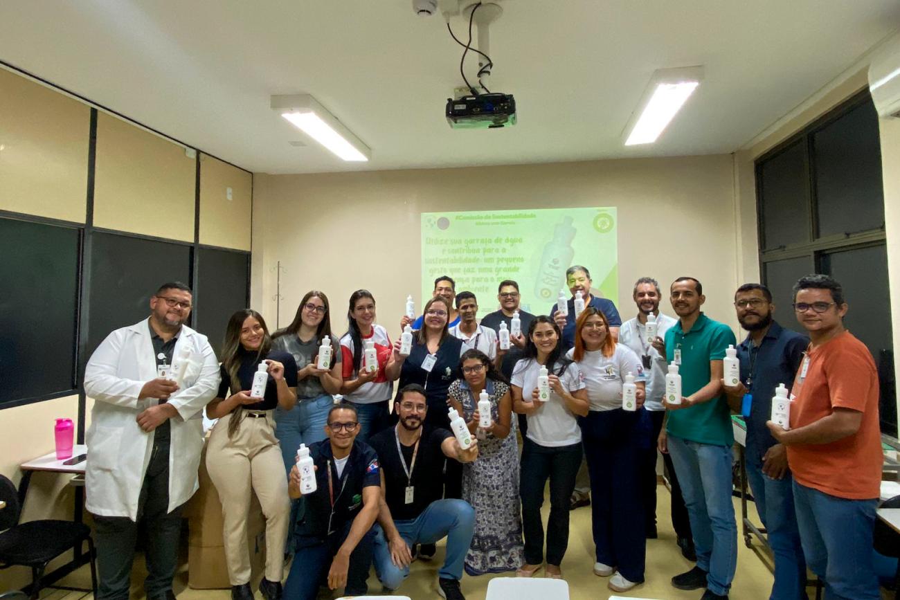 Sustentabilidade - Além das ações direcionadas aos usuários pediátricos, a unidade hospitalar, por meio da Comissão de Sustentabilidade, também realizou uma iniciativa voltada para os colaboradores. Cada funcionário recebeu uma garrafa de água reutilizável, como parte de uma campanha para incentivar o consumo adequado de água e promover a hidratação.