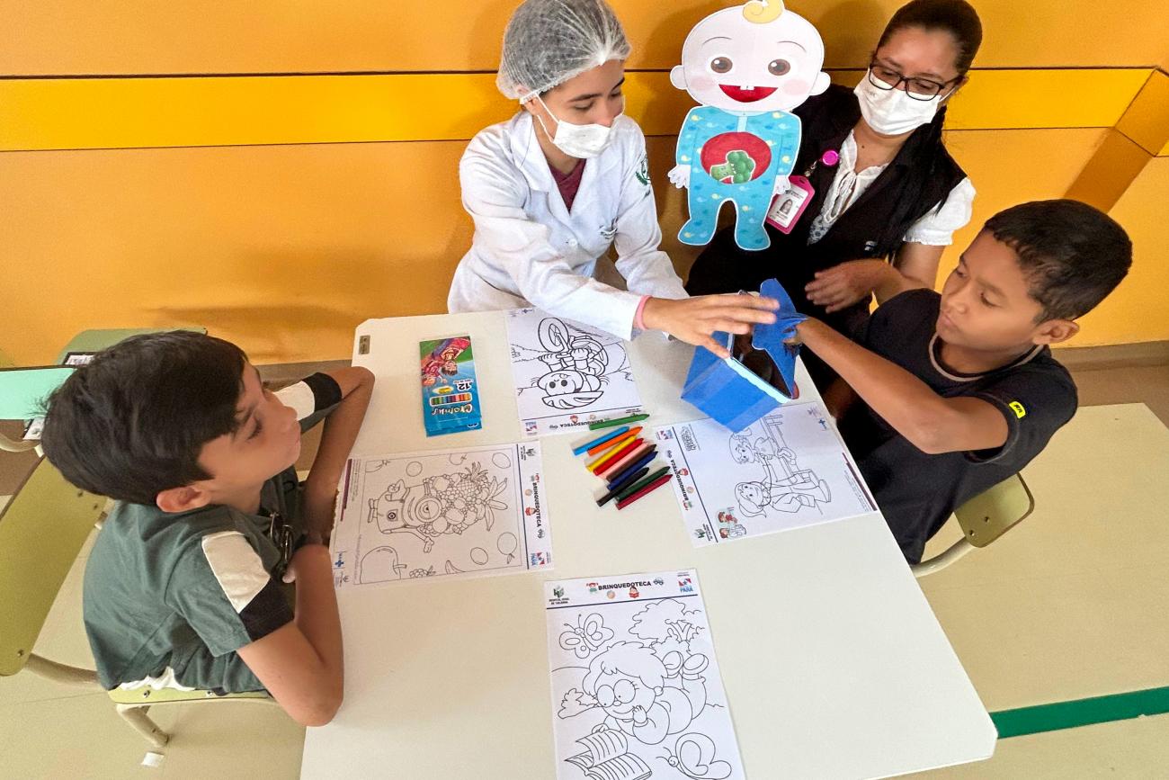 Por meio do Grupo de Trabalho de Humanização (GTH), as ações com os usuários pediátricos incluíram uma sessão de educação em saúde com foco em alimentação saudável e hábitos de higiene. A atividade foi conduzida por uma equipe interdisciplinar, e envolveu as crianças em jogos educativos interativos que tornaram o aprendizado dinâmico e envolvente.