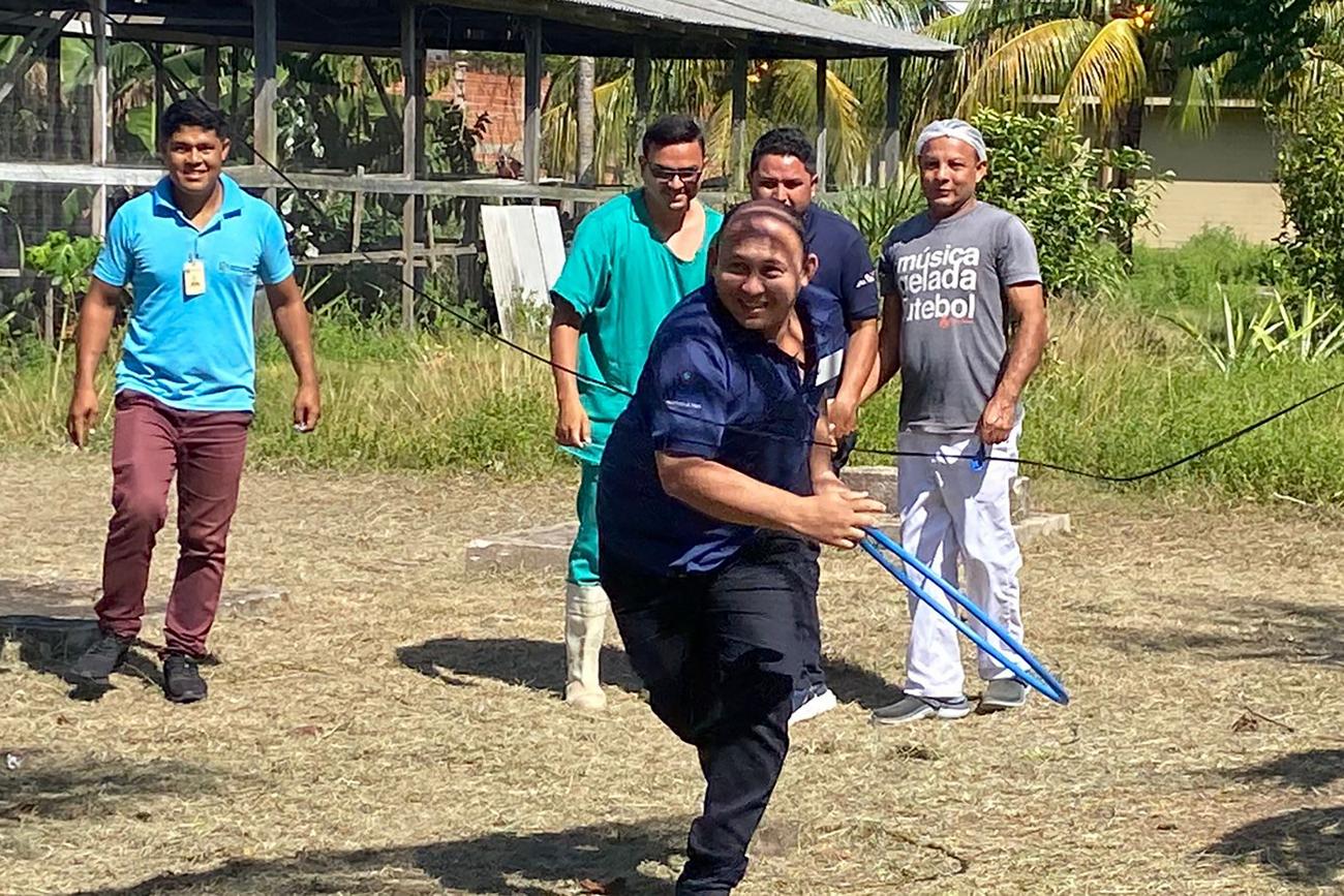 Na área externa, os pais se divertiram com as atividades organizadas pelo GTHAinda em clima de Olimpíadas, o Hospital Regional Público do Marajó (HRPM), em Breves, município do Arquipélago do Marajó, por meio do Grupo de Trabalho de Humanização (GTH), antecipou a homenagem pelo Dia dos Pais, celebrado no domingo (11,) com uma gincana especial, realizada na sexta-feira (9), incentivando a torcida pelo Brasil nos jogos de Paris.