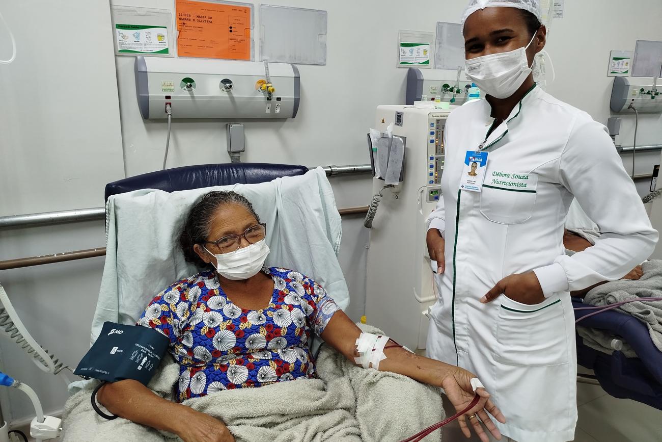 Maria de Nazaré Oliveira, 63 anos, também moradora de Eldorado, realiza há seis meses hemodiálise da instituição, gerenciada pelo Instituto de Saúde Social e Ambiental da Amazônia (ISSAA), em parceria com a Secretaria de Estado de Saúde Pública (Sespa).